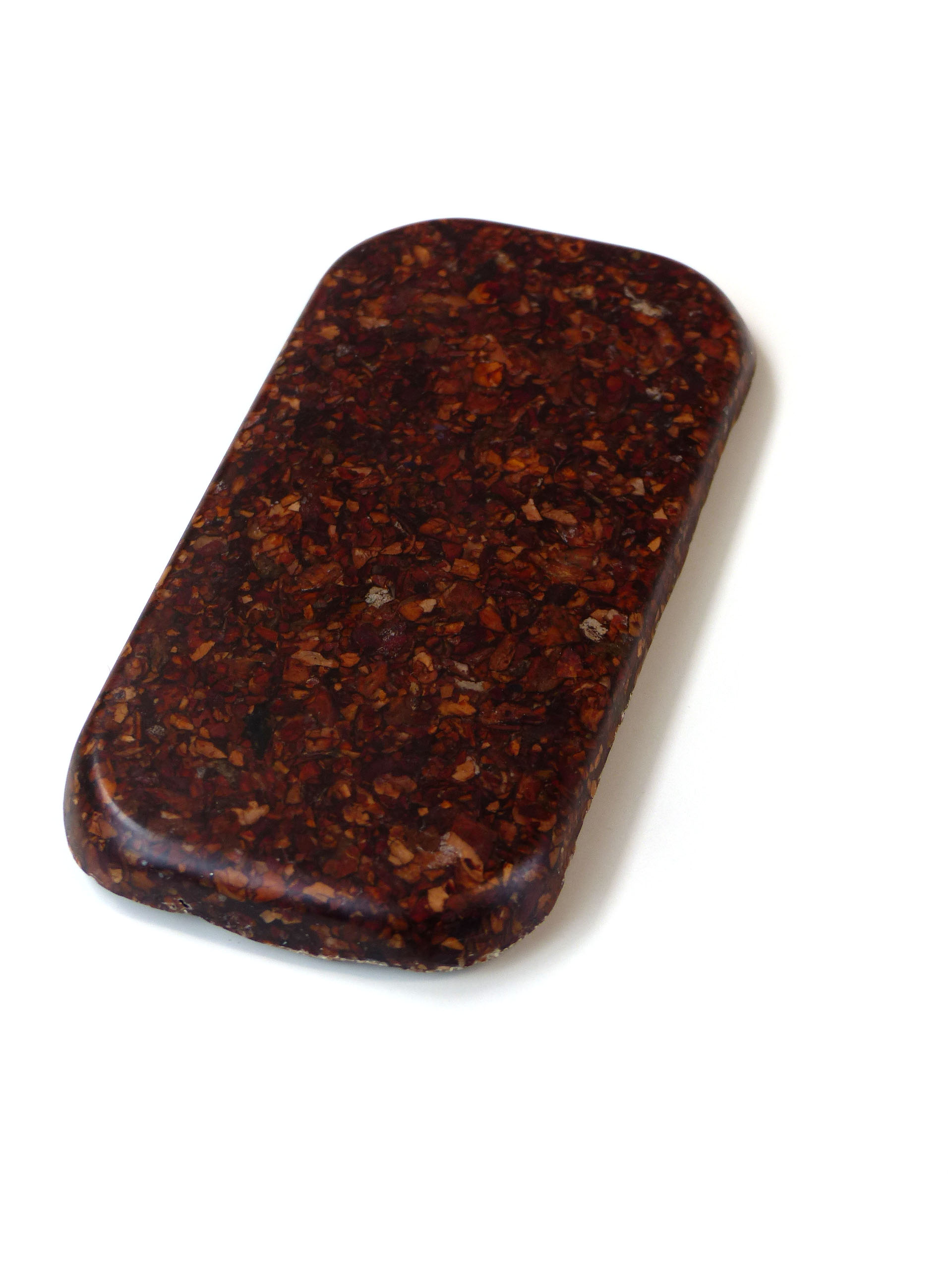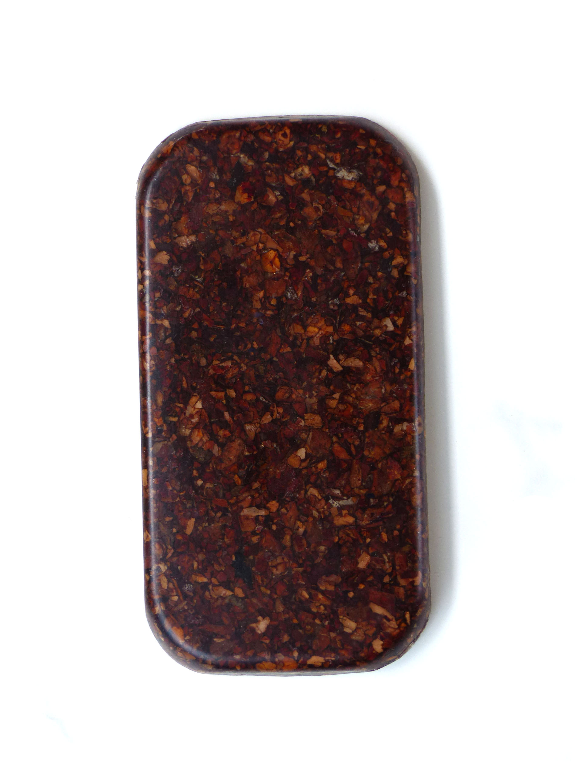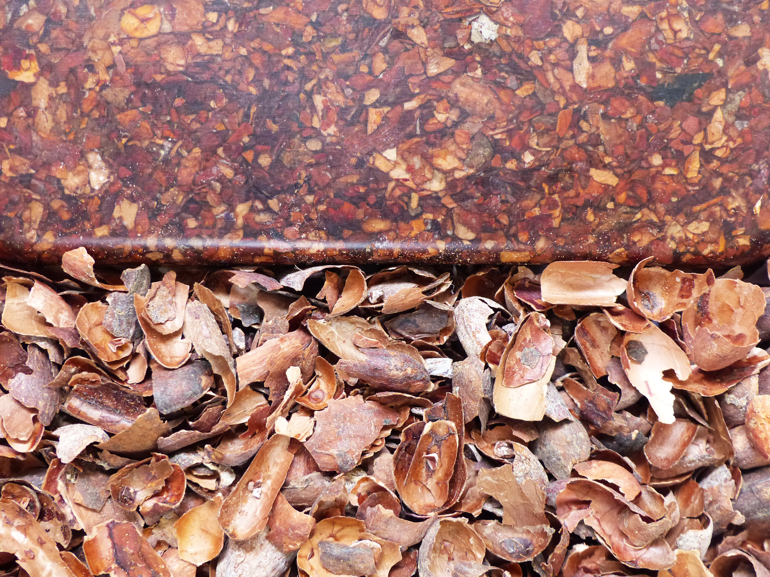 La coque (cosse) de cacao est l’enveloppe de la fève de cacao qui se détache pendant la torréfaction. Les cosses de cacao sont donc un résidu de la production de chocolat. Les quantités disponibles augmentent d’année en année. Souvent jetées par manque de débouché, nous leur donnons une seconde vie dans un matériau original et unique.
