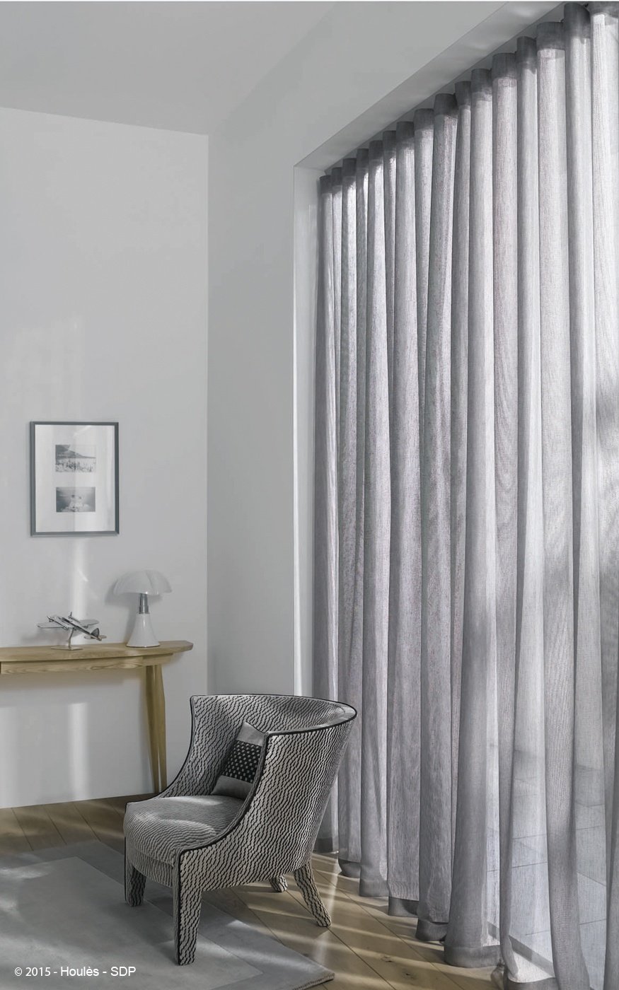 Un voilage très contemporain à l’aspect maille métallisée. (100% Polyester)