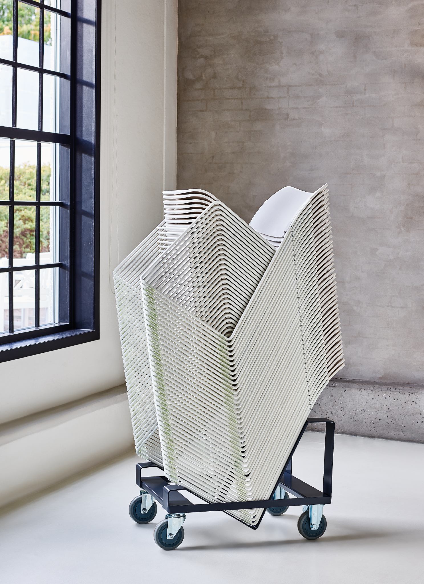 Empilable par 40 sur chariot (147cm de hauteur au total)