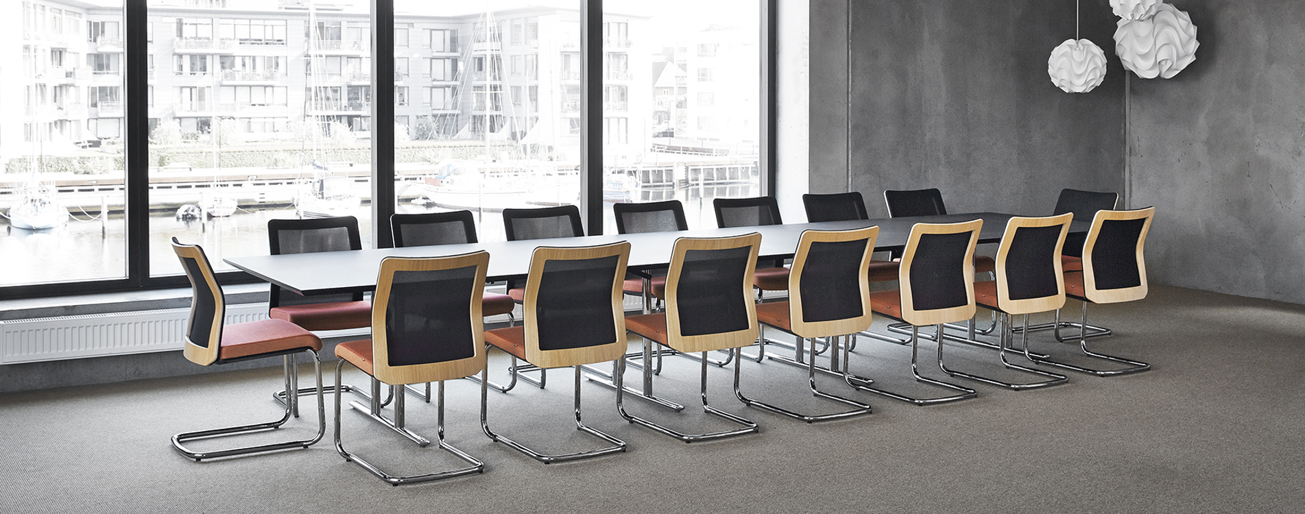 Chaque fois que le confort, les lignes classiques et la fonctionnalité sont essentiels, la chaise d'appoint en porte-à-faux MN1 est le choix évident. Cadre arrière en placage apparent. Dossier en résille ou façade tapissée. Deux hauteurs de dossier différentes.