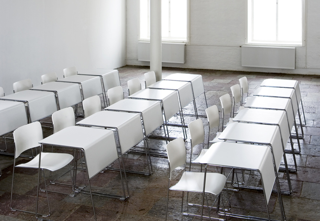 Tutor est une table empilable haute densité développée pour accompagner le célèbre programme de chaises empilables 40/4.