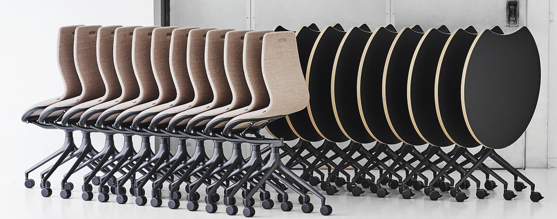 AS400 fait partie d'une série de tables rabattables incroyablement mobiles sur bases à roulettes à des fins multiples telles que la formation, les réunions, les conférences et les repas.