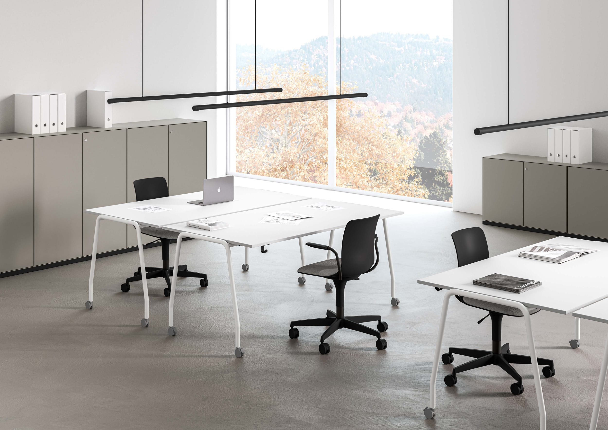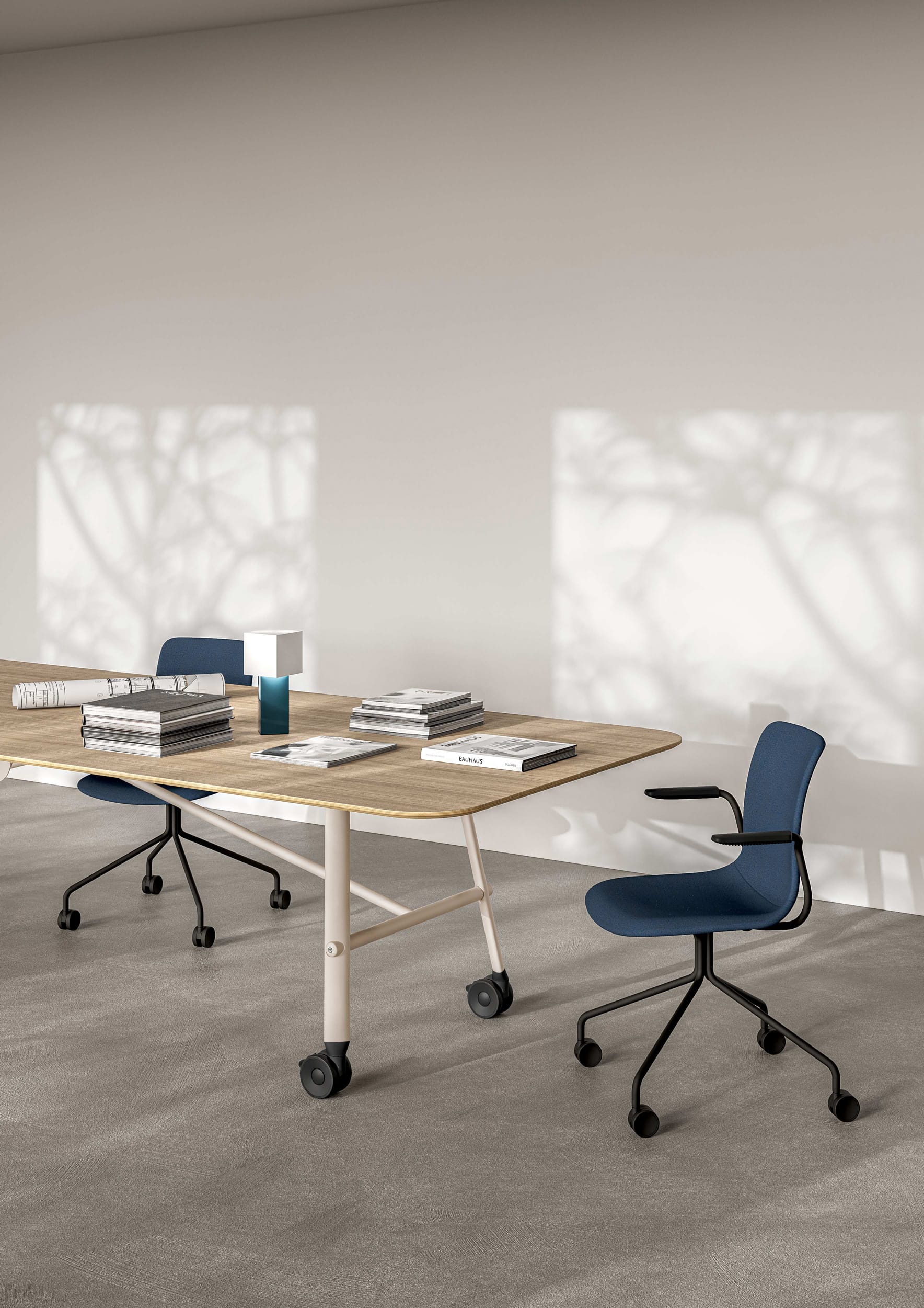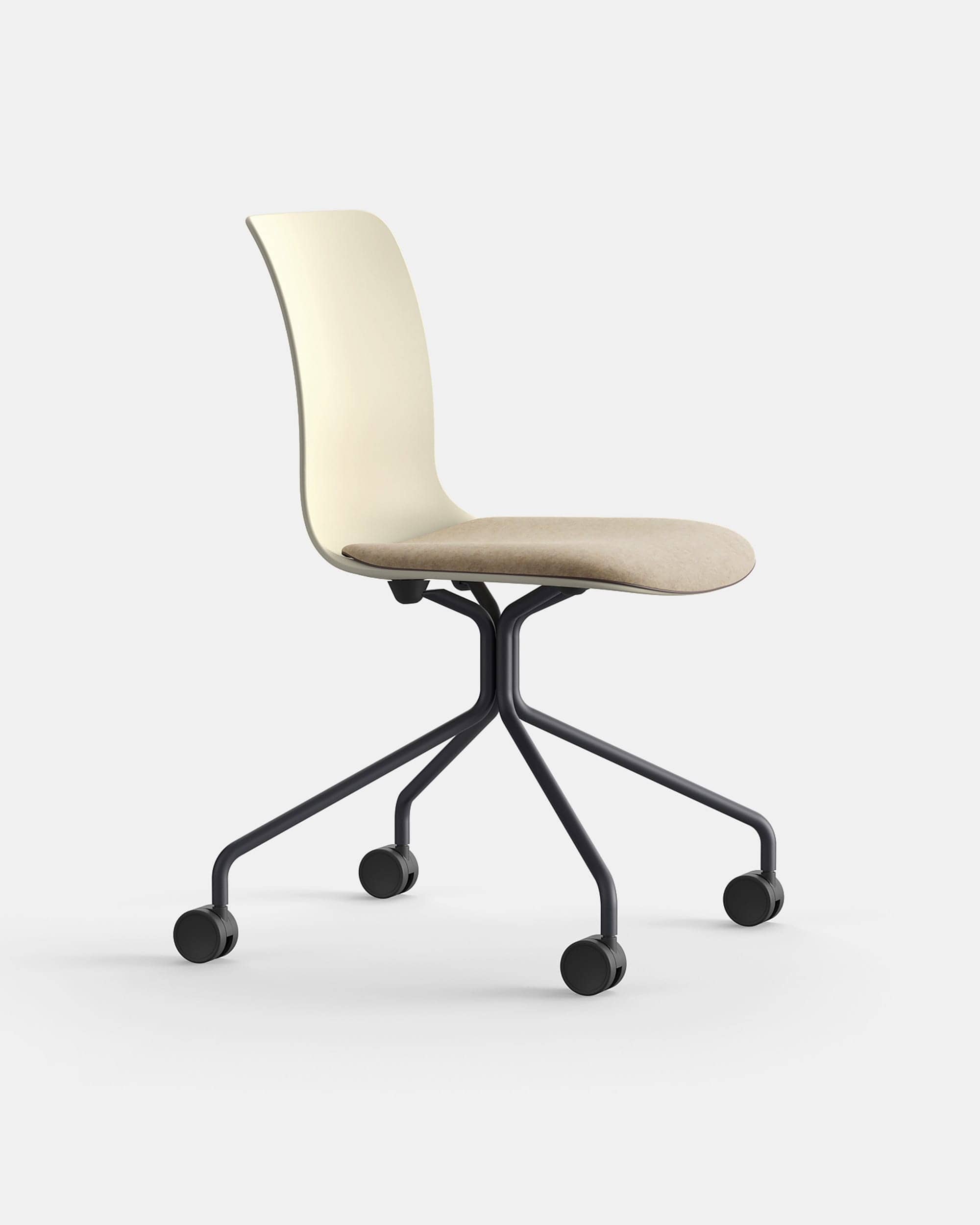 La structure en acier donne de la solidité et une touche de modernité, tandis que les roues en plastique assurent une grande praticité et mobilité. Ce design raffiné et polyvalent s’adapte parfaitement aux contextes de travail dynamiques, garantissant non seulement le confort mais aussi une esthétique raffinée qui met en valeur les espaces.