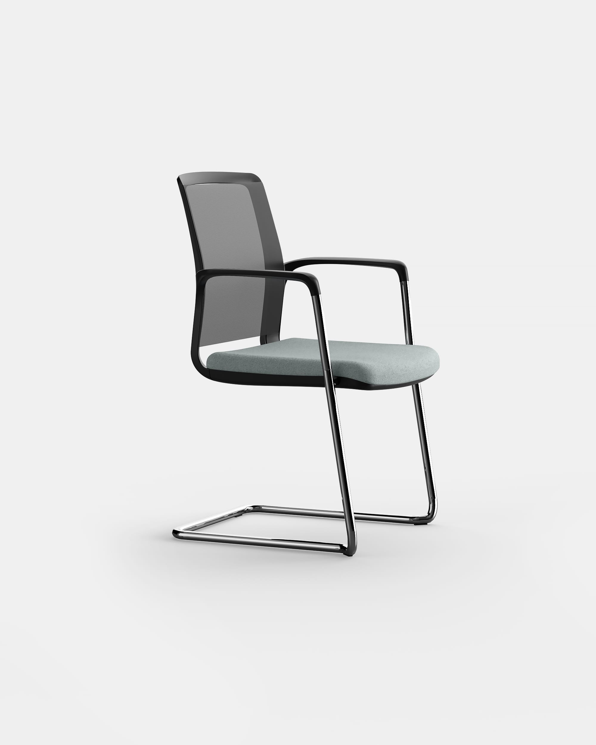 Le dossier est disponible en deux variantes : en maille ou rembourré. La maille permet une excellente ventilation, gardant le corps au frais pendant une position assise prolongée, tandis que le dossier rembourré offre un soutien encore plus important pour la colonne vertébrale. L’assise est disponible en différents types de tissus, offrant la possibilité de personnaliser le fauteuil en fonction de vos besoins. La structure est en acier tubulaire, tandis que les accoudoirs sont en polypropylène, un matériau résistant et léger. Le fauteuil est disponible en deux variantes : avec une base luge ou avec des roues. La version avec roues est particulièrement adaptée aux environnements de travail, car elle vous permet de vous déplacer facilement.