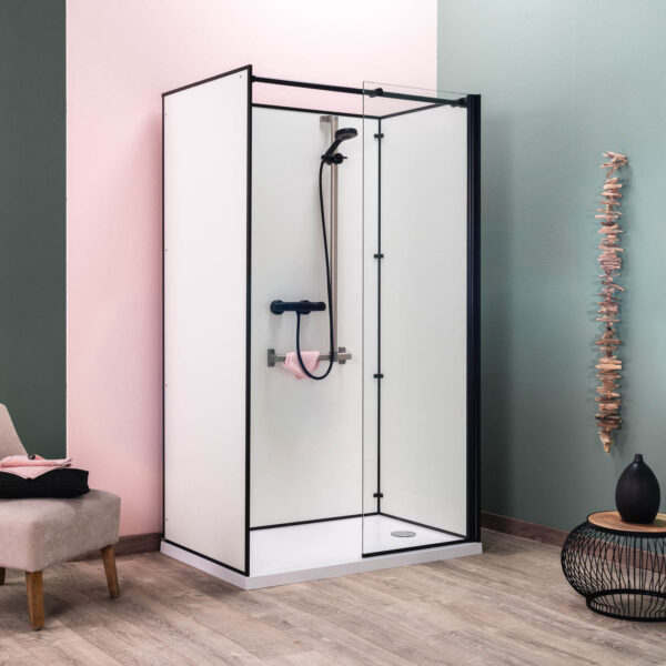 La douche senior LINE 100 a été conçue pour toute la famille en tenant compte des plus jeunes ainsi que de nos aînés. L’entrée dans la douche se fait sans manipulation de porte pour une accessibilité totale et sans contrainte.