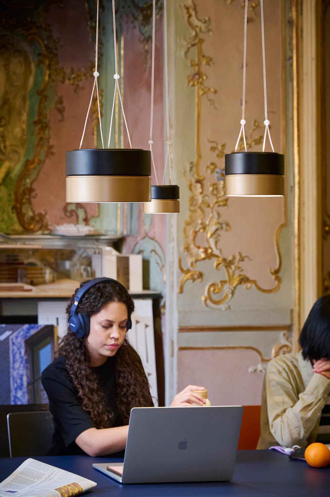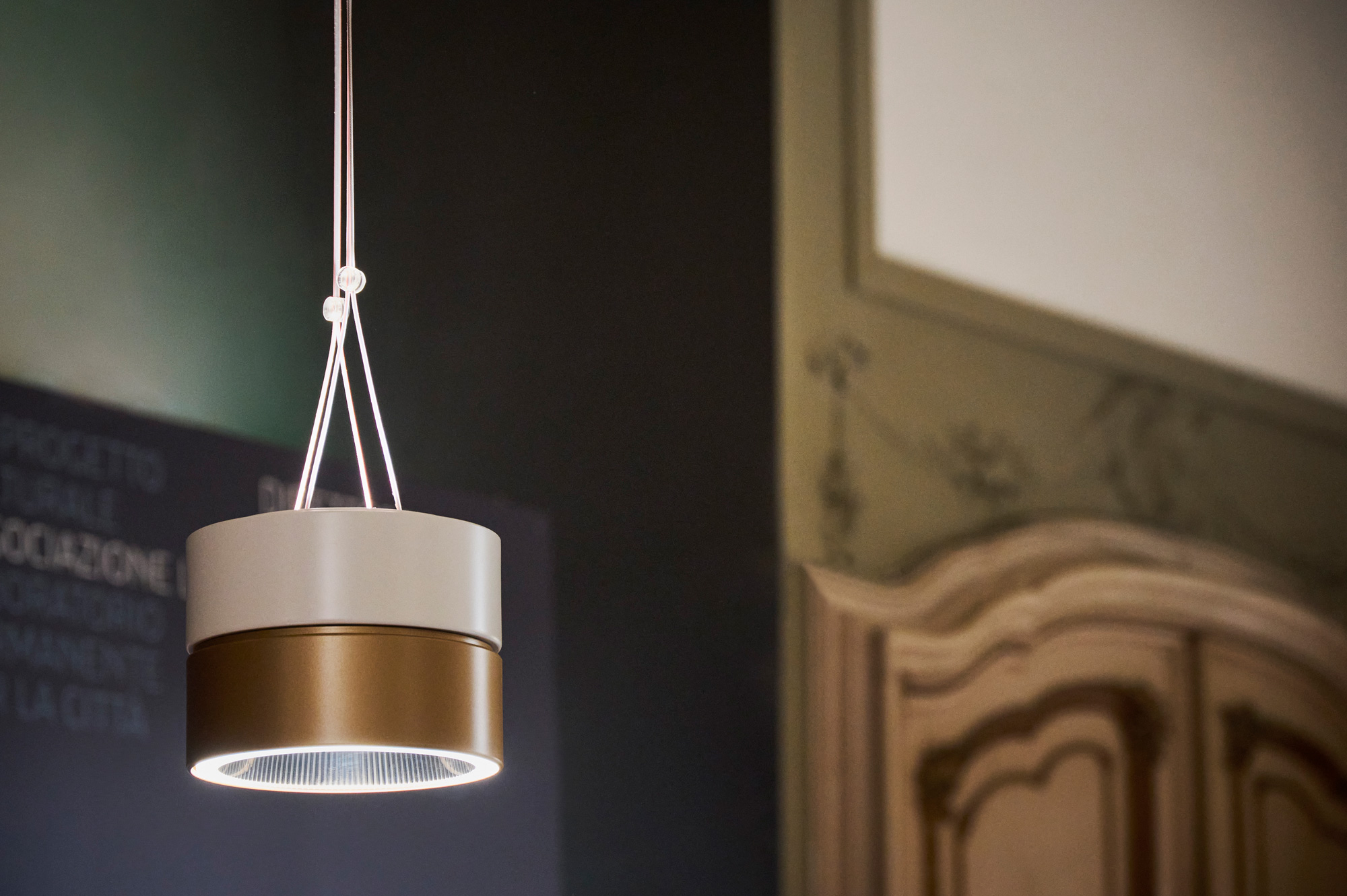 Deux éléments dont l'essence est de se composer, maintenus ensemble par un interstice, une fine ligne d'ombre qui donne de la légèreté à l'ensemble. Le BeTwo est né de l'idée de mettre en scène la technologie Opti Diamond dans un rapport innovant et spatial, capable de modifier la perception de l'espace, de l'animer. Émission directe mais aussi directe/indirecte, avec des versions d'éclairage général, UGR<19 et des flux lumineux de 1300 lm à 6600 lm. À partir d'une forme simple et circulaire, il a été décidé d'ajouter un élément capable de capturer la lumière et de la raconter. Les deux éléments peuvent également être combinés avec différentes finitions, créant ainsi des détails décoratifs qui s'intègrent dans l'espace et le caractérisent.
