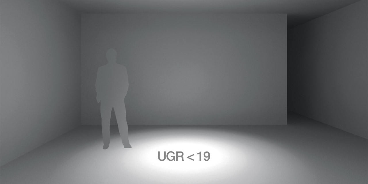 - UGR < 19: une version confort à écran à microprismes, spécifique aux ambiances de travail, garantit des valeurs d'UGR < 19 et une luminance contrôlée < 3000 cd/m2.