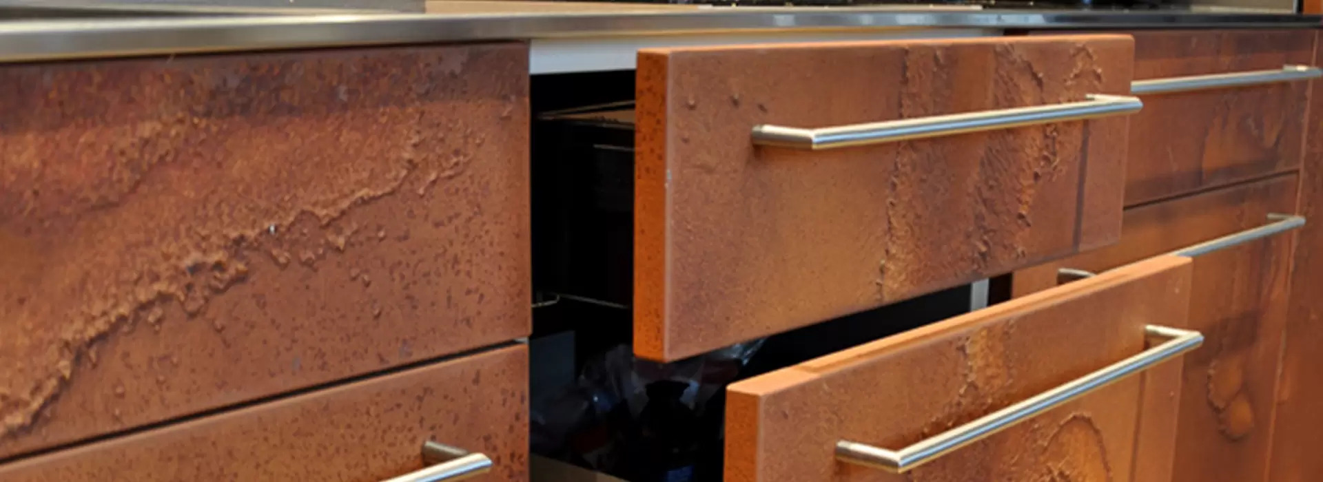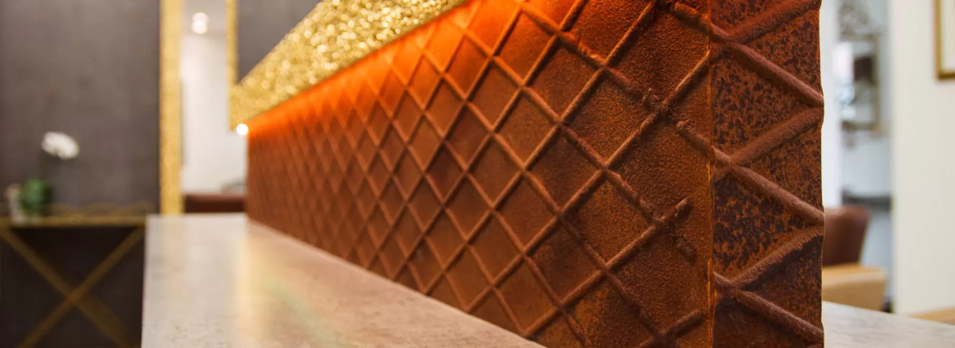 IMI-rouille ou IMI-rost convient non seulement à la construction de meubles et au revêtement mural, mais peut également être utilisé comme sol grâce à sa surface poncée.
