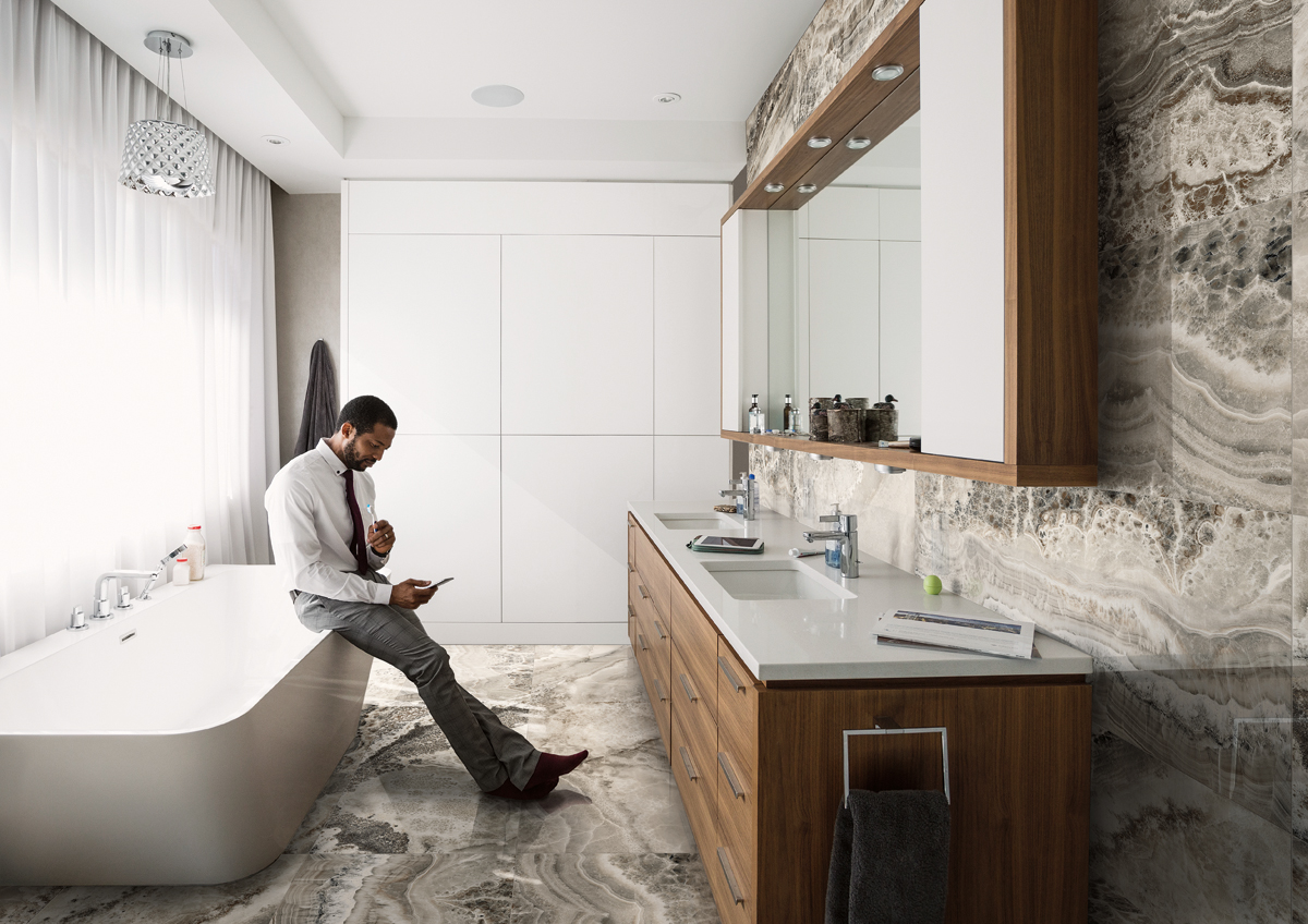 The Room™, un collectionneur unique de marbres, décliné en dix-sept solutions esthétiques différentes, pour de nouveaux scénarios à la mode, interprétés à travers un langage accueillant, raffiné et contemporain.
