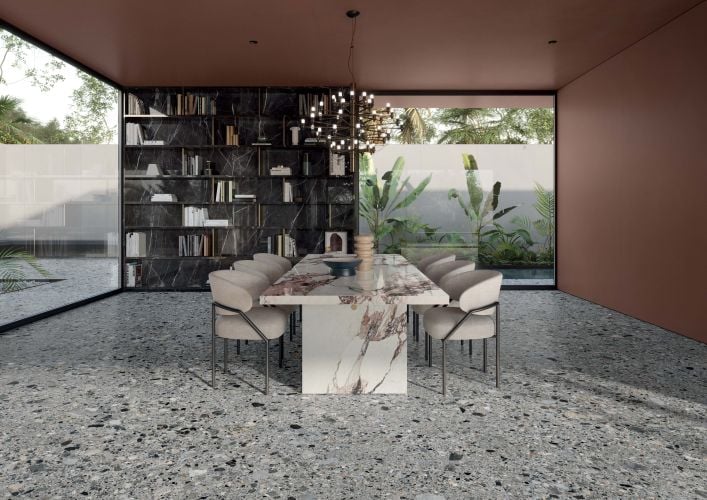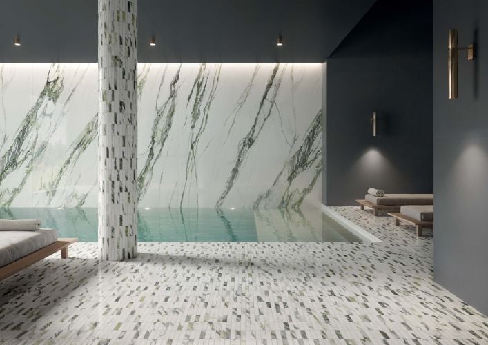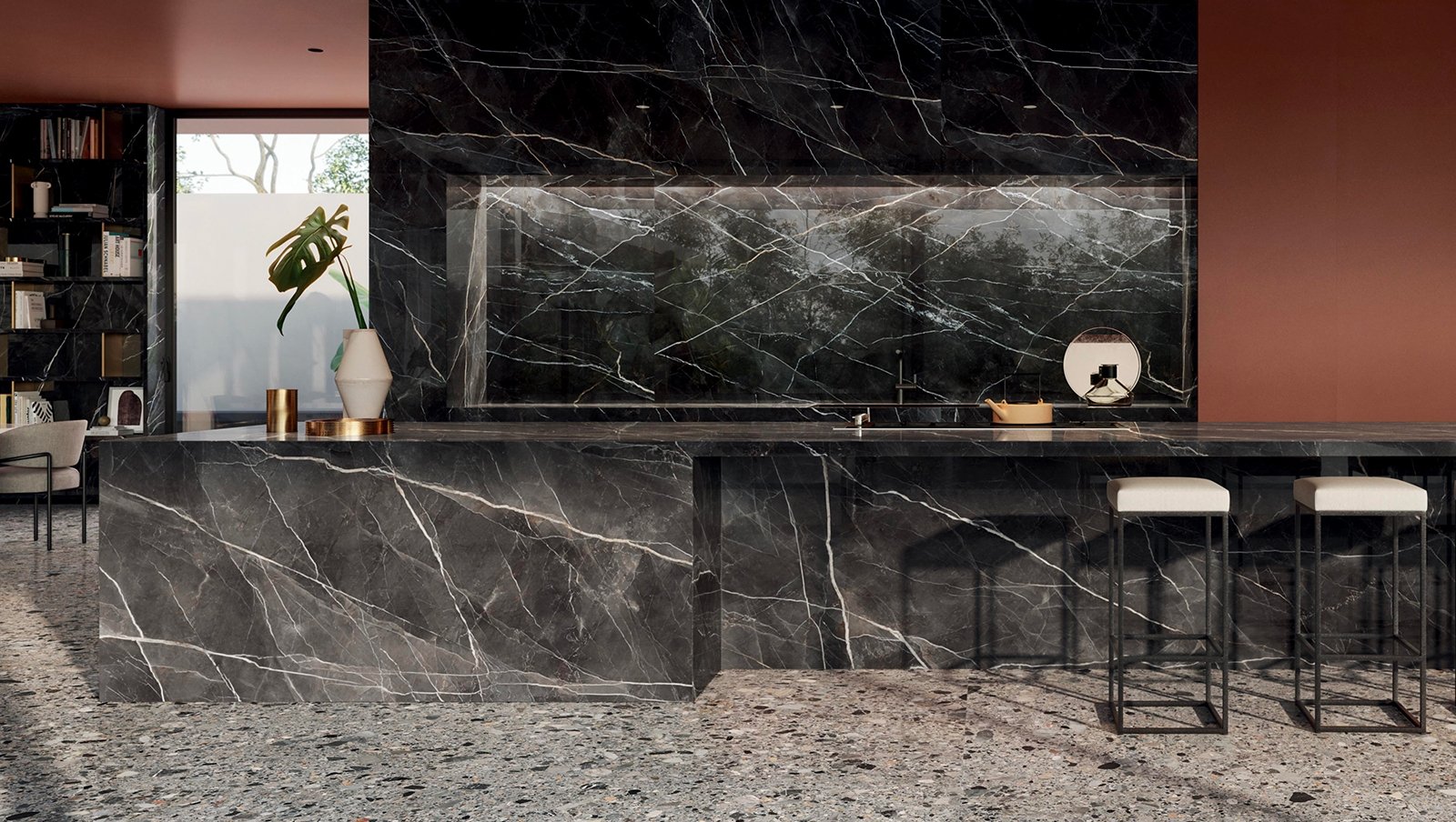 Onze marbres céramiques uniques par la composition somptueuse des volutes minérales et les nuances de couleurs élégantes.