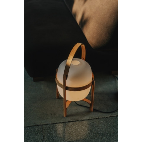 Finition : Abat-jour en verre opale blanc, Structure en bois de cerisier