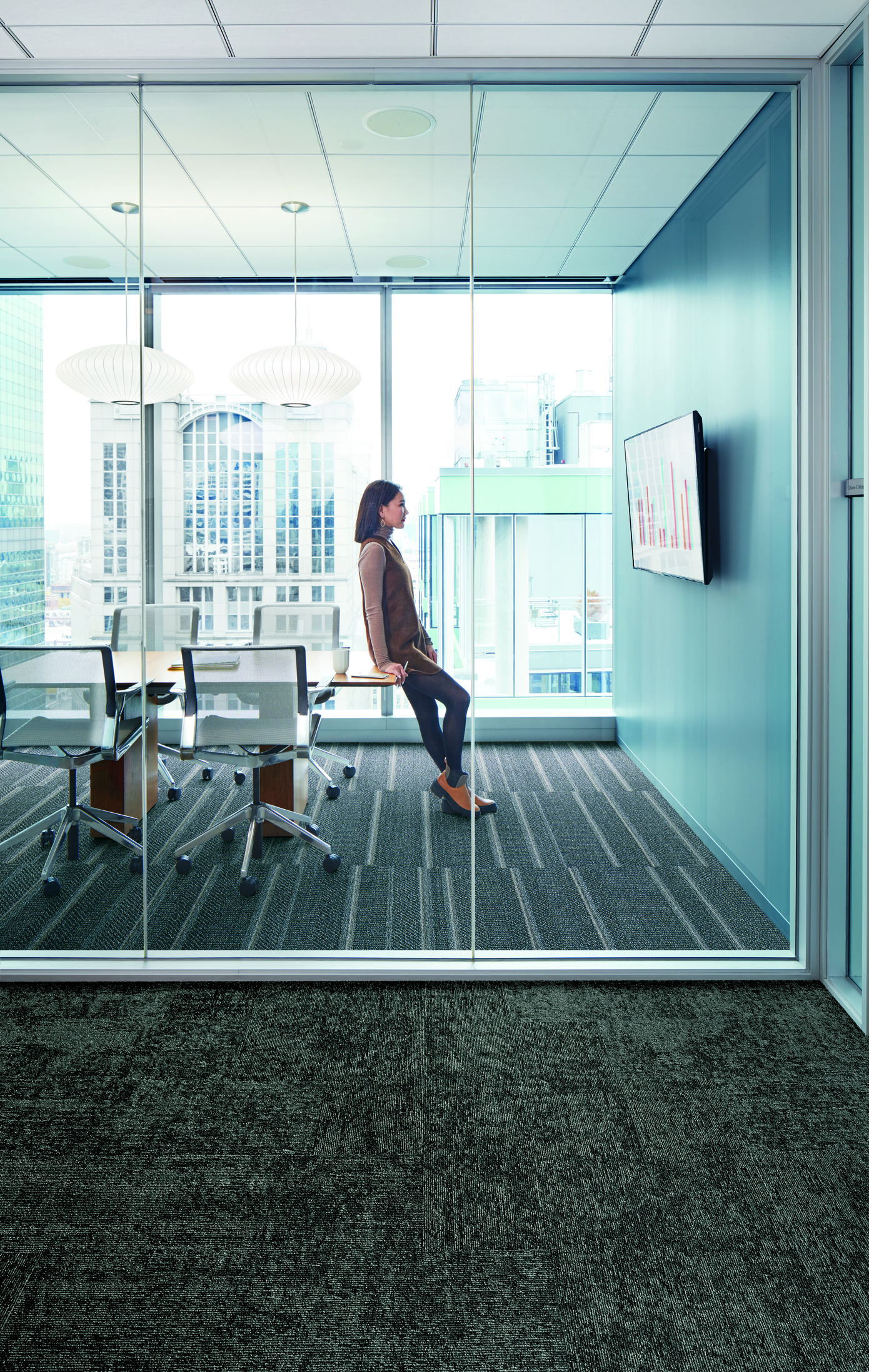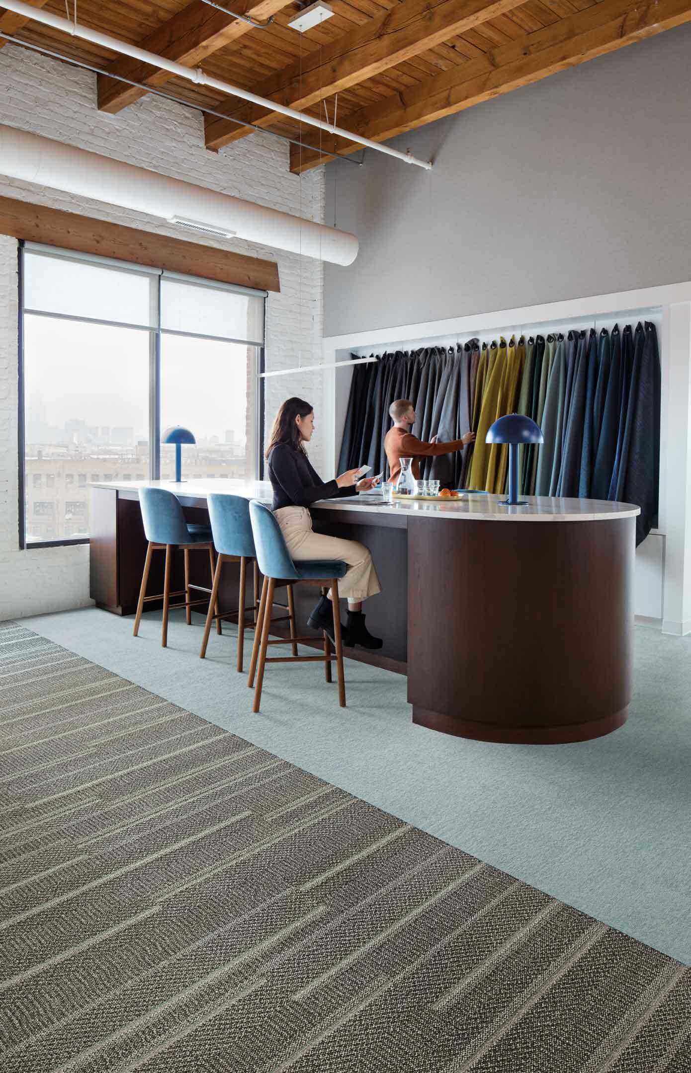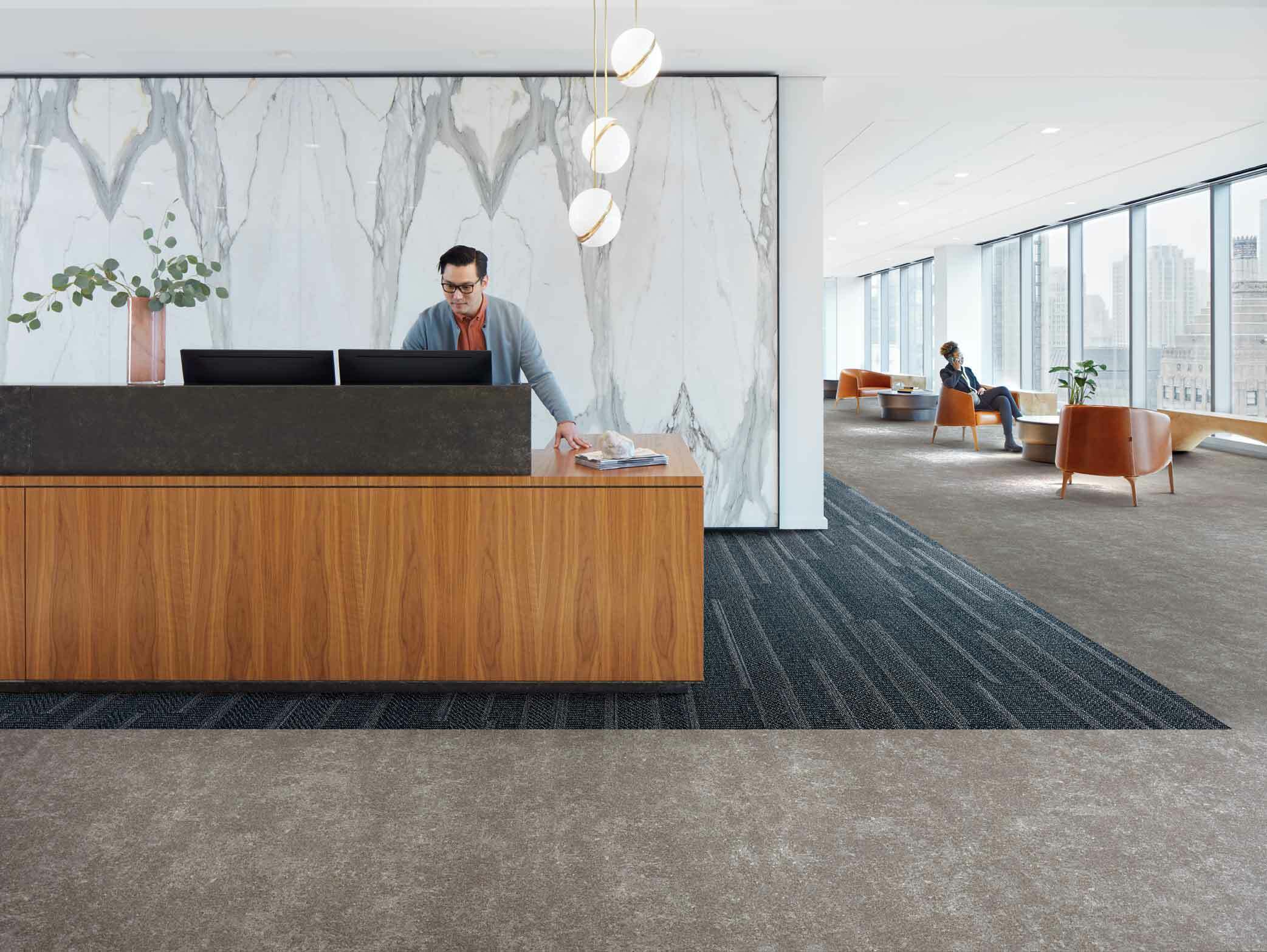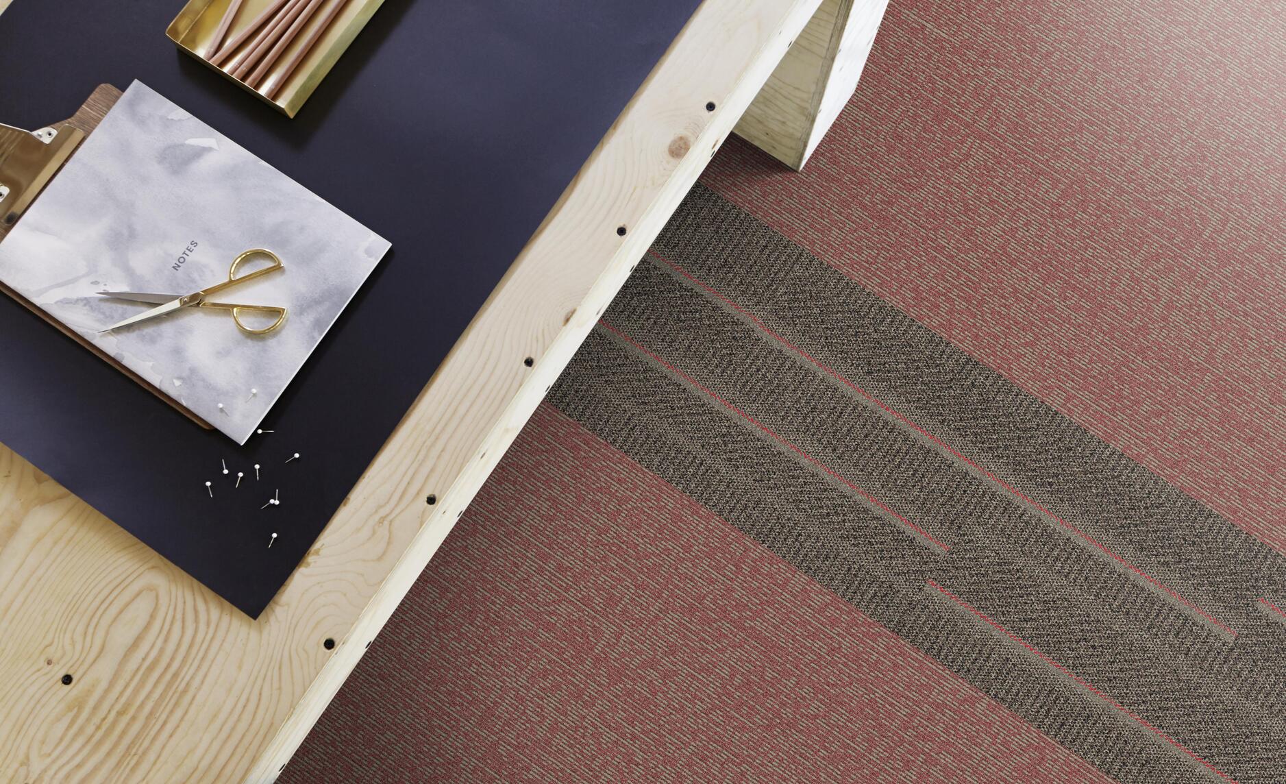 Simple Sash™ offre un mélange de textures. Le détail du motif le lie aux autres dalles de moquette de la collection Embodied Beauty™, tandis que l'effet sergé crée un rythme unique sur le sol.