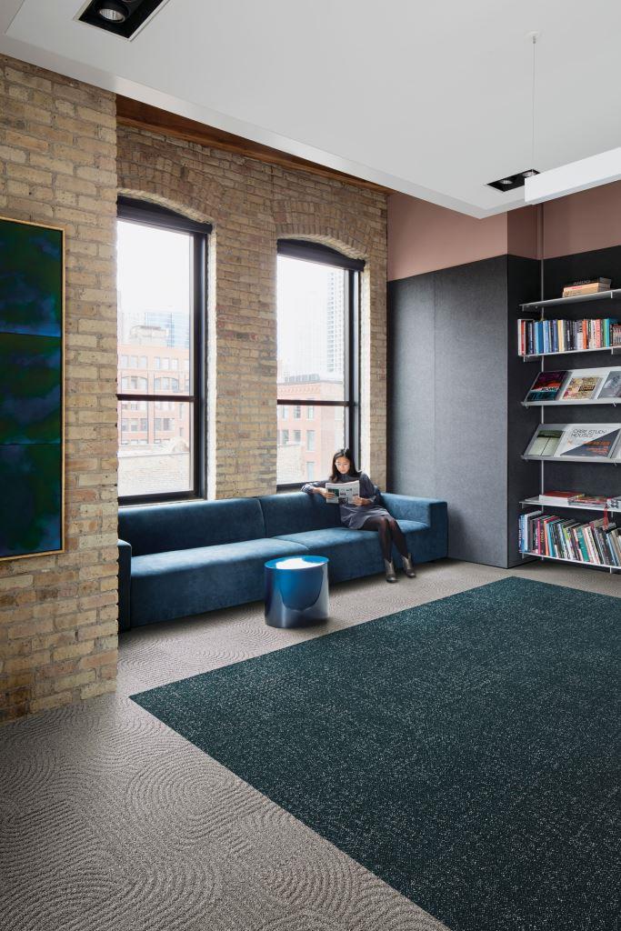 Les courbes de Step this Way™ sont une version adoucie de celles du vinyle modulaire, Walk About™. Avec elles, vous passez sans effort d‘un sol textile à un sol dur.