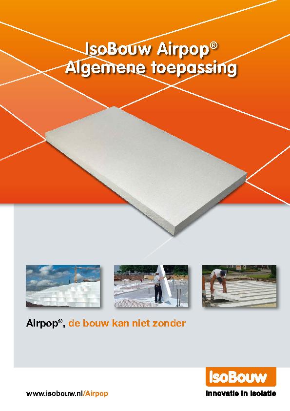 Pop aérien® est le nouveau nom de l’EPS (polystyrène expansé). Il est extrêmement respectueux de l’environnement (composé à 98% d’air). Airpop a® Des propriétés uniques en termes d’isolation, de santé, de sécurité, d’environnement et de longévité. Il est léger mais résistant à la pression, facile et sûr à traiter. airpop est toujours fourni par IsoBouw dans la qualité ignifuge SE.®