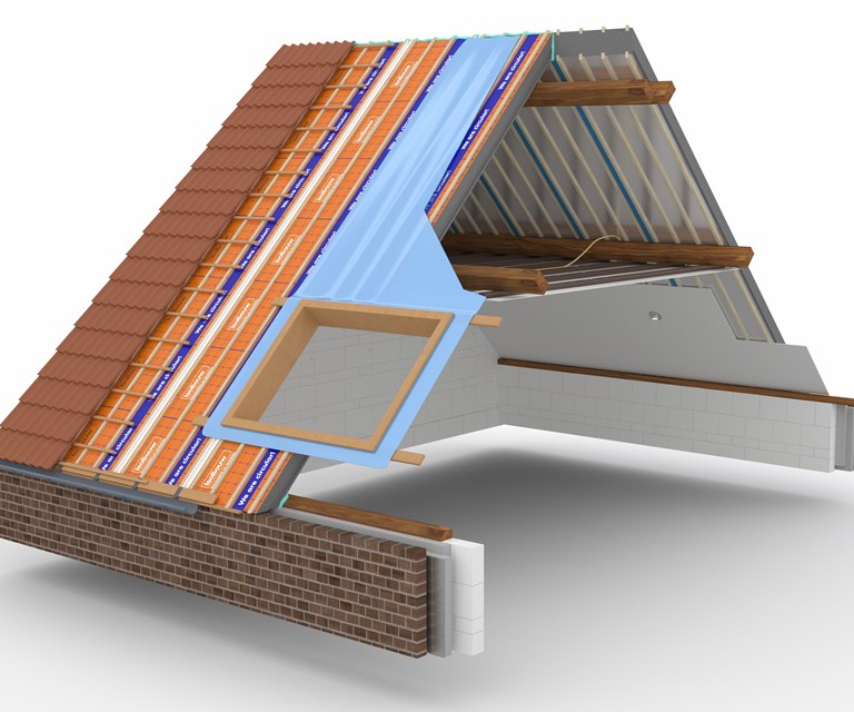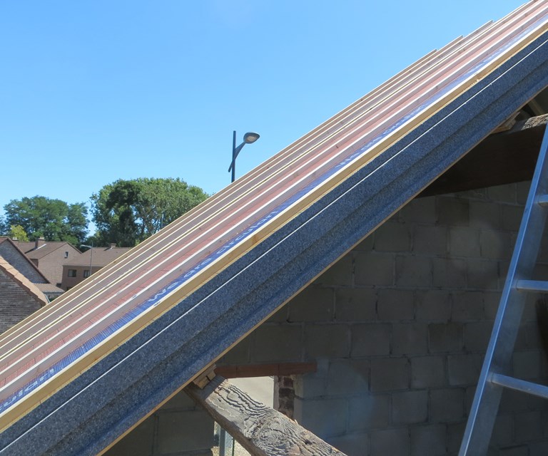 iRoof combine les meilleures caractéristiques d’un toit en treillis et d’un toit en sergé en un seul produit. En intégrant des chevrons dans l’isolant, la construction et l’isolation peuvent être installées en un seul passage. Ainsi, votre toit est étanche au vent et à l’eau, plus rapidement et immédiatement isolé.