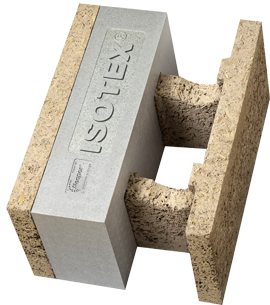 Le produit New Bloc HDIII 38/14 Graphite - Isotex Blocs et Planchers en bois béton de ISOTEX est composé de : Fibres minérales .