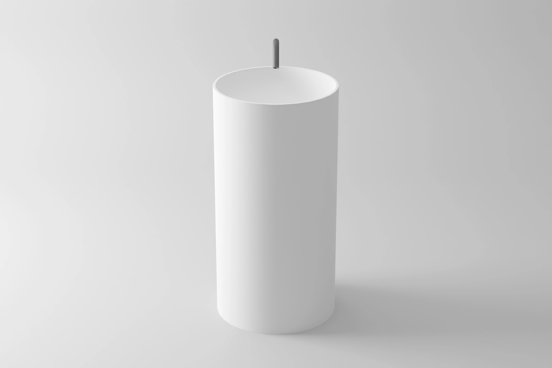 Vasque cylindrique en Solid Surface | FAVOR-10. Cette vasque est à poser au sol, dans la salle de bains – espace d’eau. Dimensions : Diam. 440 x 870 mm. Conçue en Solid Surface V-korr, en coloris blanc uni, cette vasque est idéale pour les salles de bains.