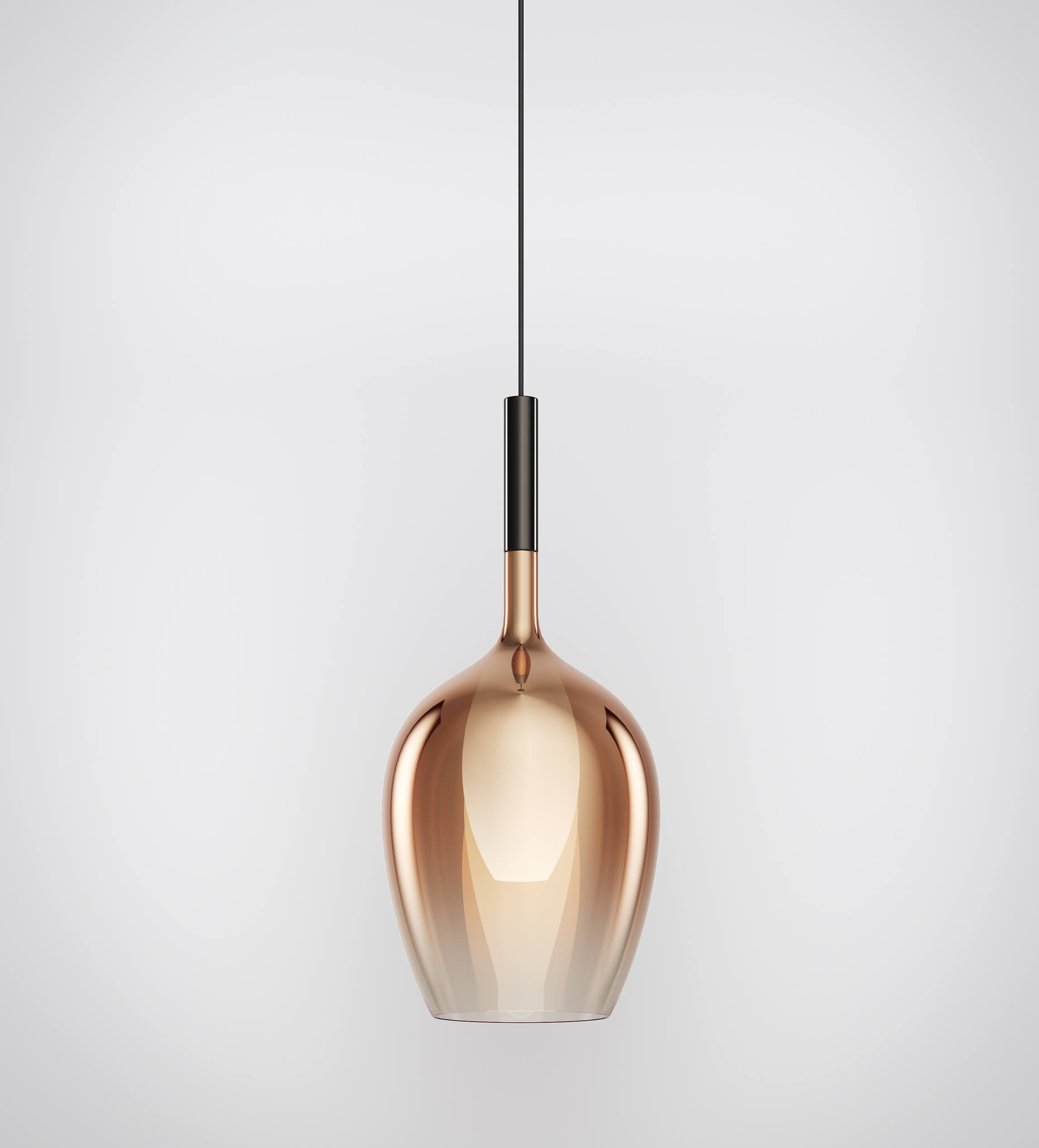 Suspension en verre avec finition métallisée titane, vert aqua ou cuivre et métal finition bronze, chrome ou or.