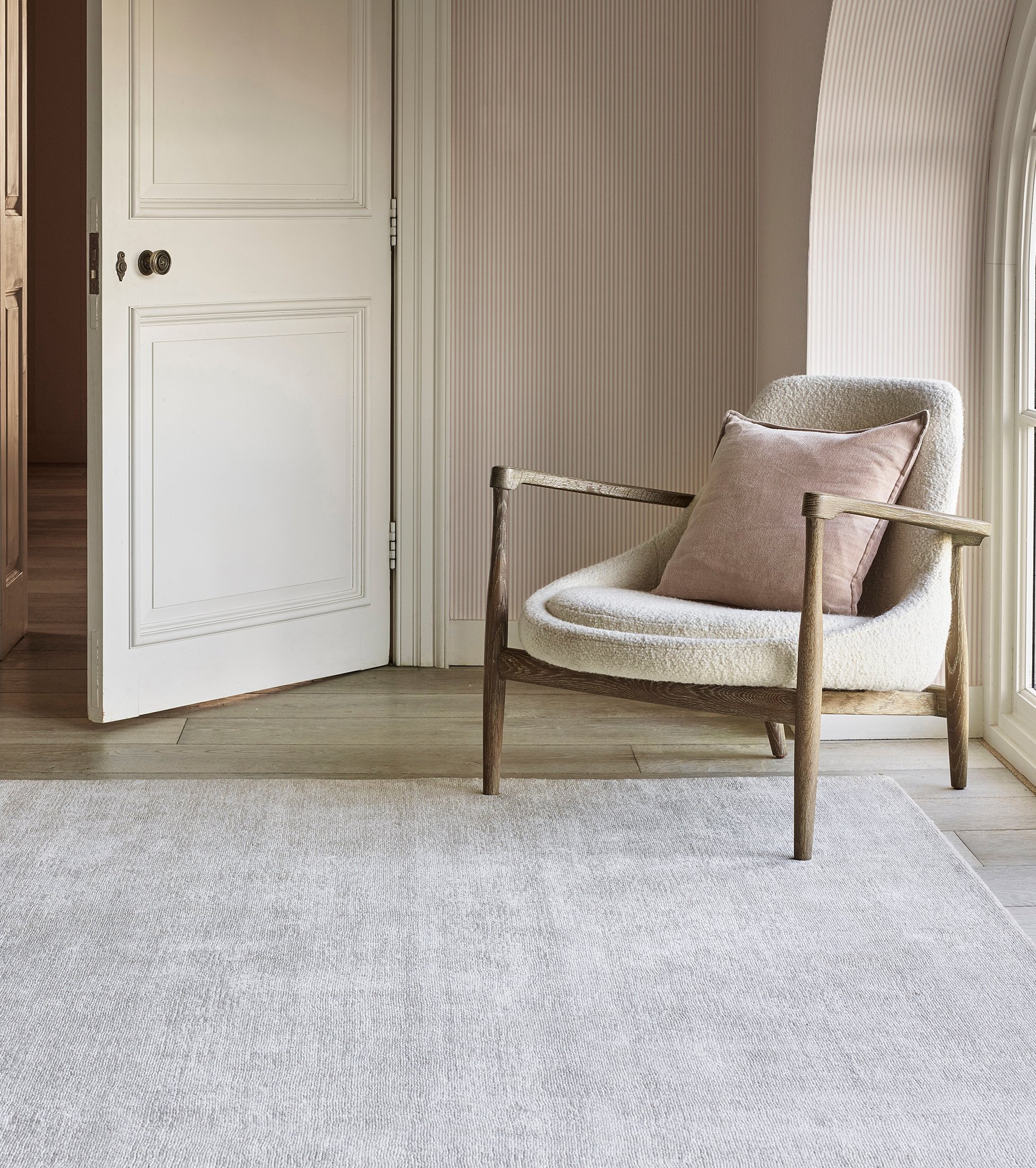 Les poils bouclés de Babri sont tondus de manière aléatoire pour créer une texture originale qui est brillante, douce, chaude, résiliente et facile à nettoyer. Tissé à la main à partir d’un mélange de laine naturelle non teintée et de TENCEL™.