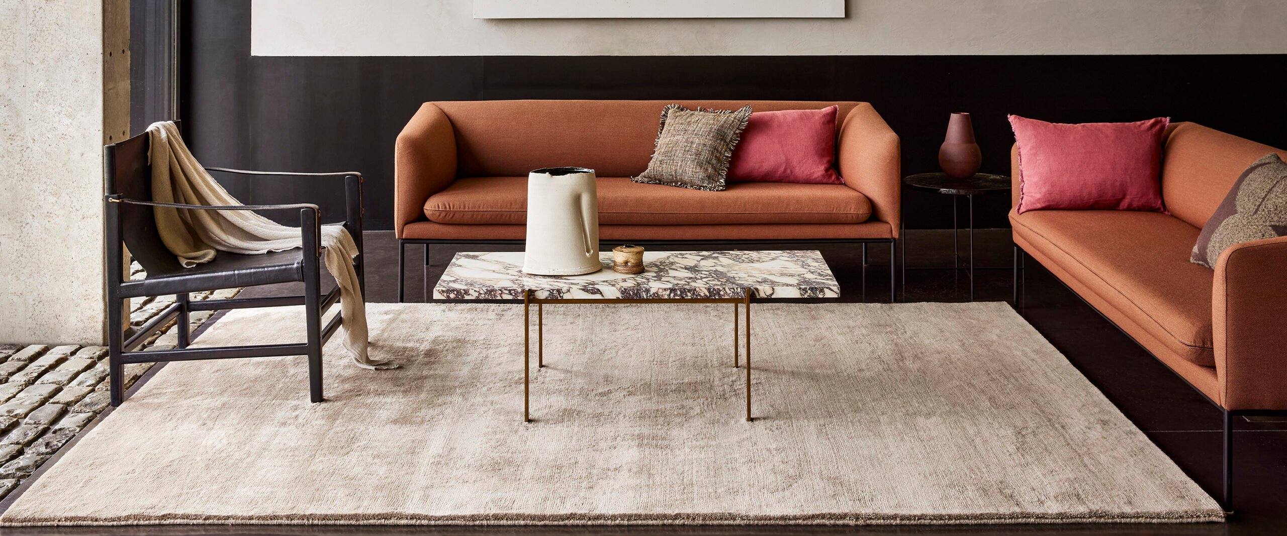 Une collection de sept tons chauds et terreux inspirés par la nature. Disponible en 3 tailles de tapis en stock et en tapis de 4 m de large. Des tapis de 5 m de large et des tapis sur mesure sont disponibles sur commande spéciale.