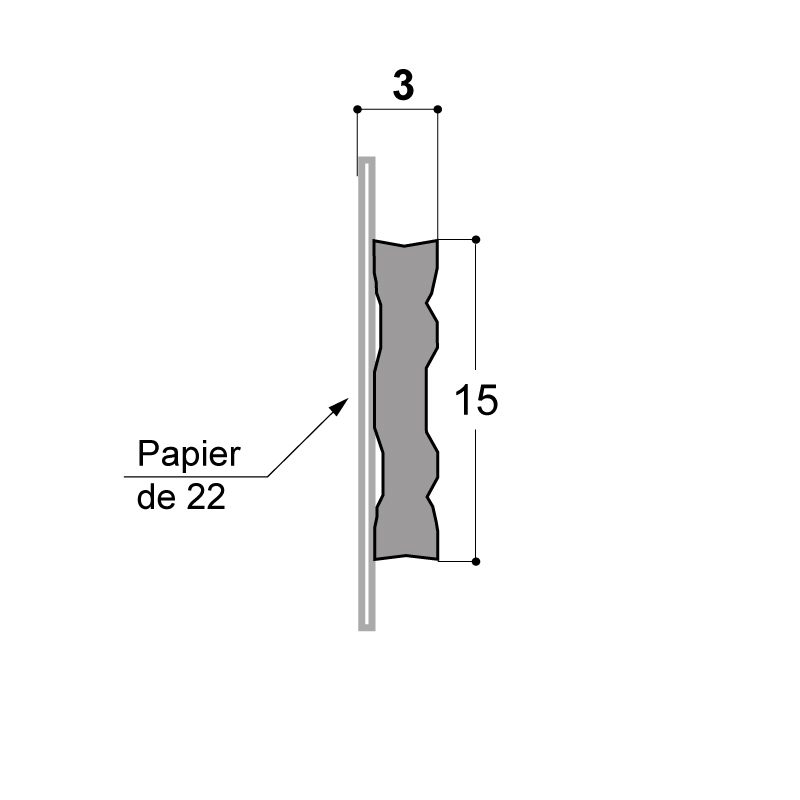 Le produit MASTIC SEMI-VULCANISE du fabicant JOINT DUAL a une épaisseur de 3 mm, une largeur de 15 mm,