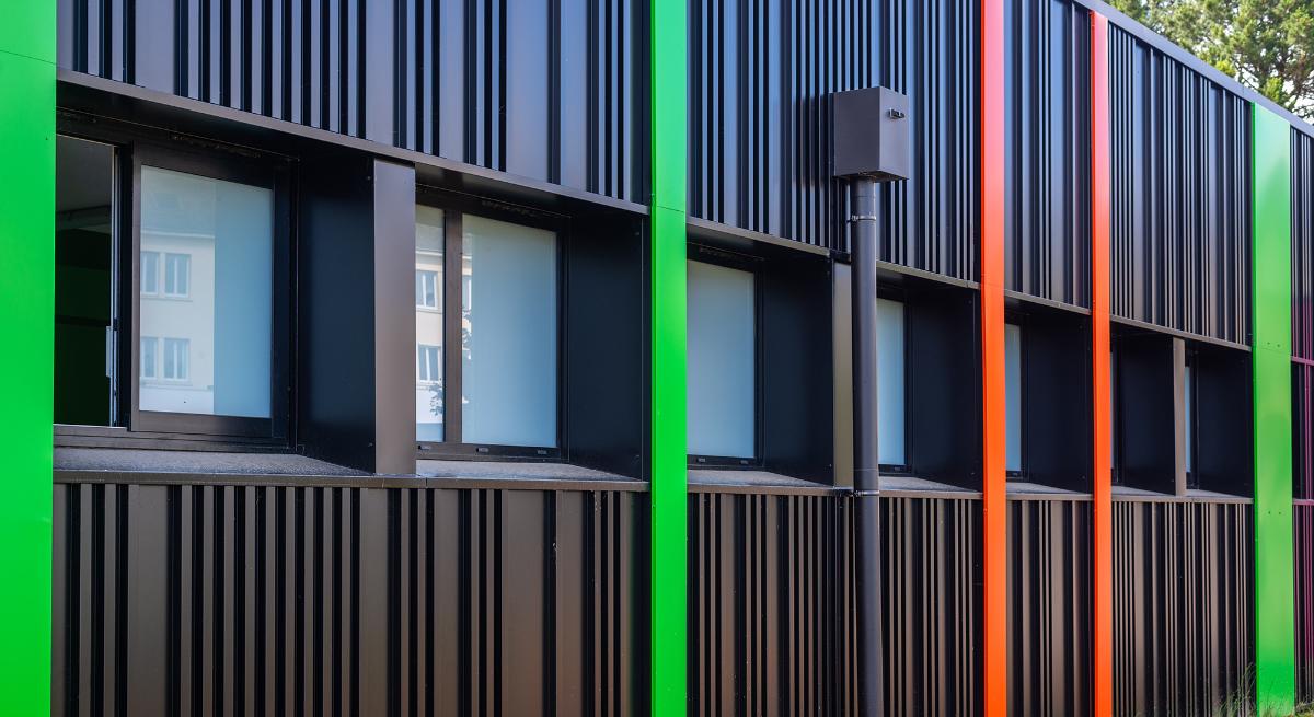 JI Magine est un concept de parement de façade nervurée, à fixations apparentes, dédié à l’habillage de bâtiments neufs ou en rénovation de bâtiments résidentiels, tertiaires, ERP , etc. JI Magine se présente sous l’aspect d’un profil nervuré dont la géométrie à façon résulte d’un potentiel industriel dédié au service d’une analyse d’un besoin architectural. JI Magine se pose en bardage simple peau, parement extérieur de bardage double peau ou à peaux multiples ainsi qu’en bardage rapporté. JI Magine est un concept dont les caractéristiques sont conformes aux Recommandations Professionnelles RAGE Bardage de Juillet 2014.