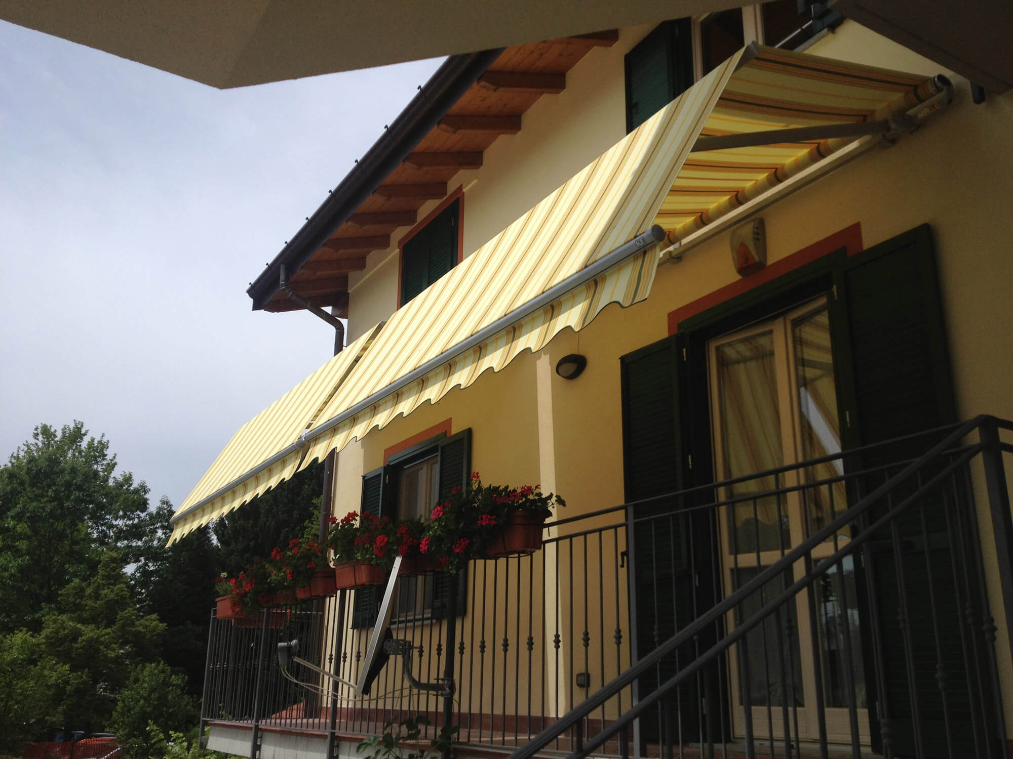 Auvent à barre carrée 40x40mm équipé d’un profil de décomposition qui facilite le changement d’inclinaison de la toile.