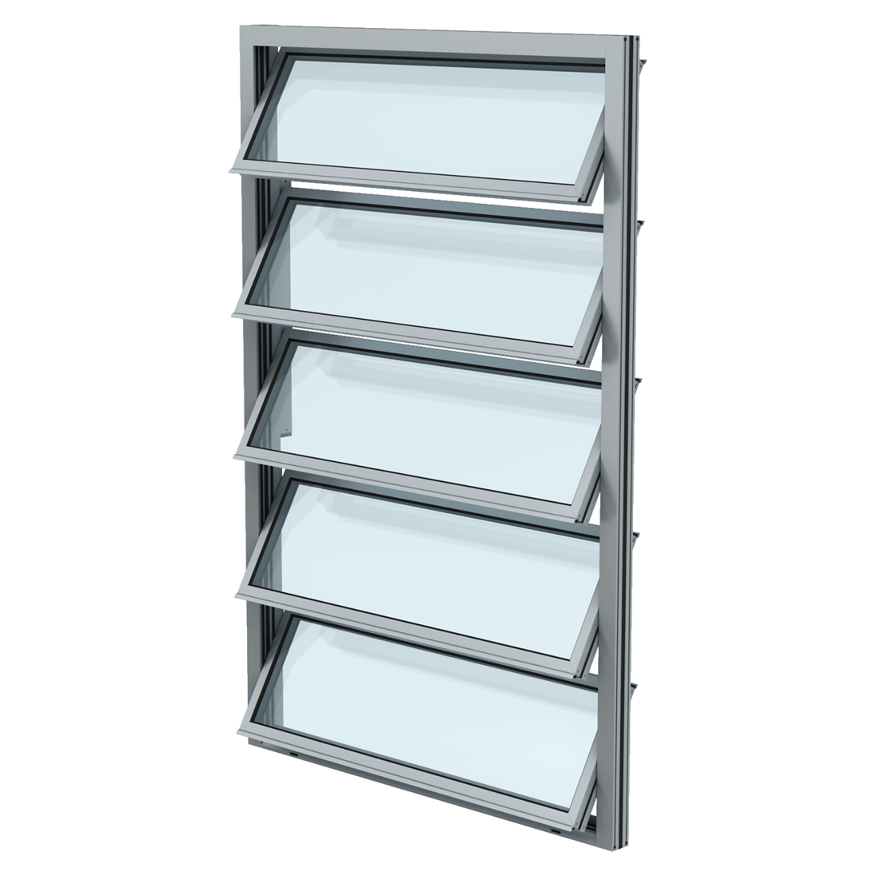 Cet exutoire de fumées est doté de ventelles assurant aussi la ventilation quotidienne. Il répond aux normes EN 12101-2 et EN 14351-1. Il existe différents types de remplissages pour les lames mobiles ; en verre, en panneaux sandwich…Pour contrôler l’ouverture et la fermeture il est possible de le faire mécaniquement ou avec une commande électrique ou pneumatique. Le cadre est disponible en thermolaquage dans toutes les couleurs RAL.