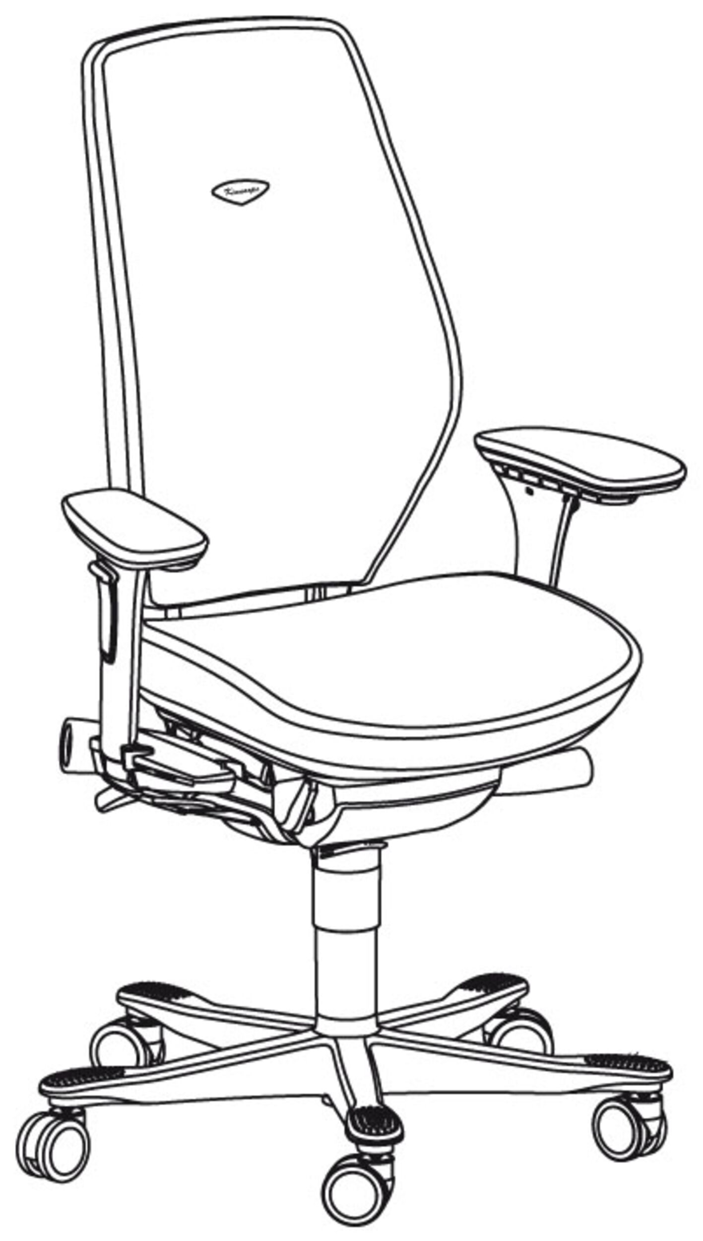 Siège de travail offrant un contrôle total. Assise et dossier de taille moyenne. Accoudoirs réglables en hauteur, largeur, profondeur et inclinables, dotés d’une surface résistante à l’abrasion et d’un rembourrage extra moelleux.