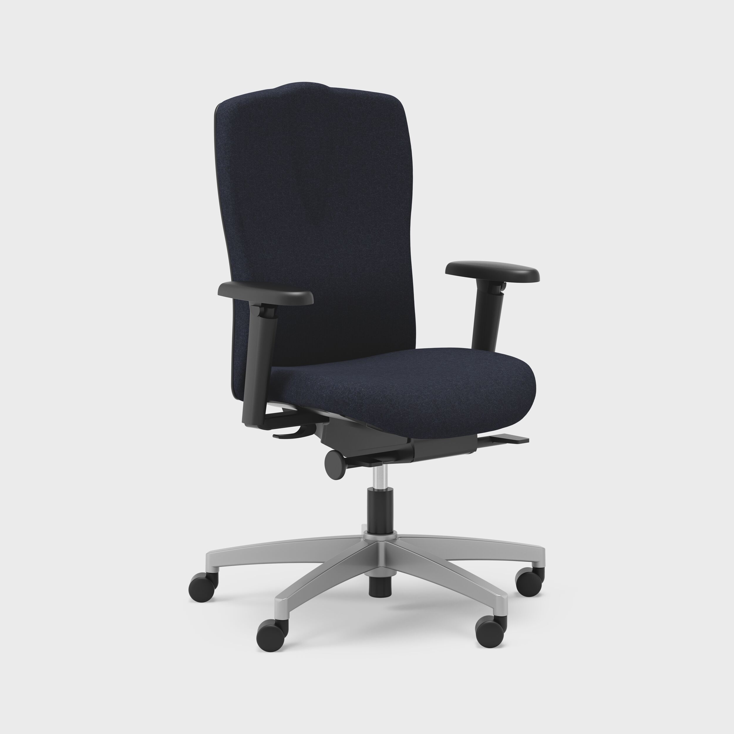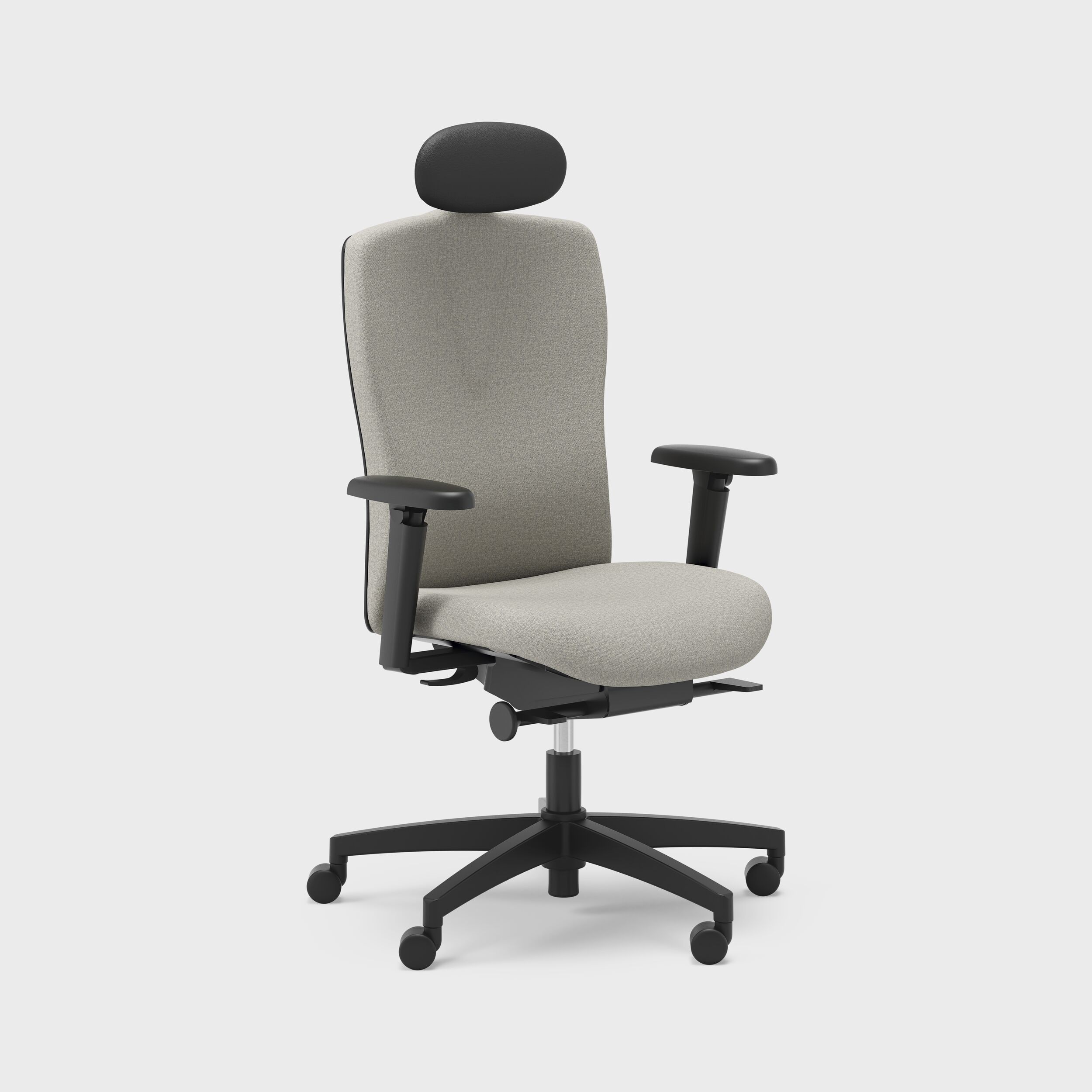 Siège de travail polyvalent et confortable avec assise et dossier en tissu et repose-tête. Accoudoirs réglables en hauteur et en largeur. Le haut du dossier est spécialement conçu avec un coussinet Relax-o-flex®, lequel stimule légèrement la partie supérieure de la colonne vertébrale pour permettre une assise confortable pendant de longues périodes.