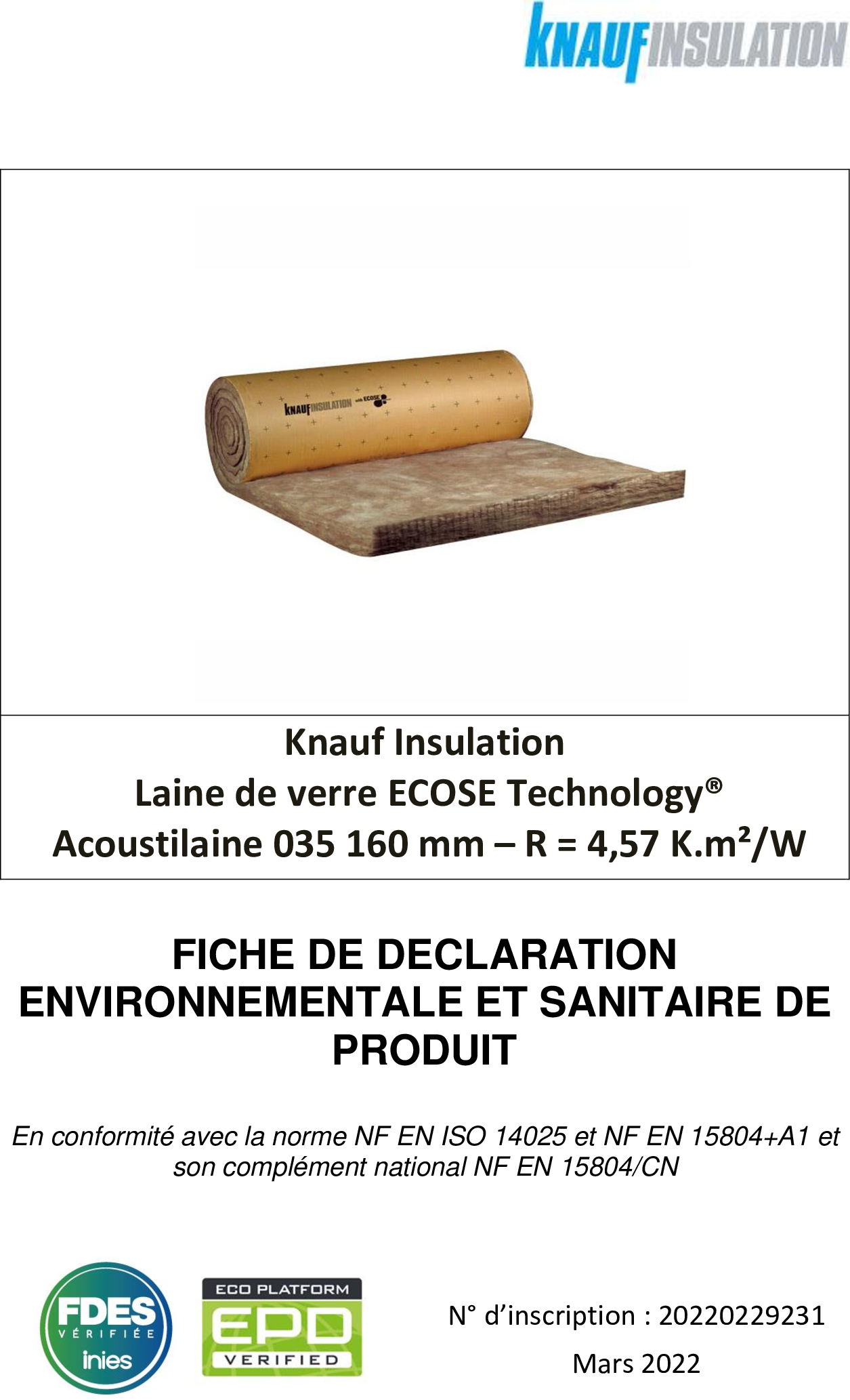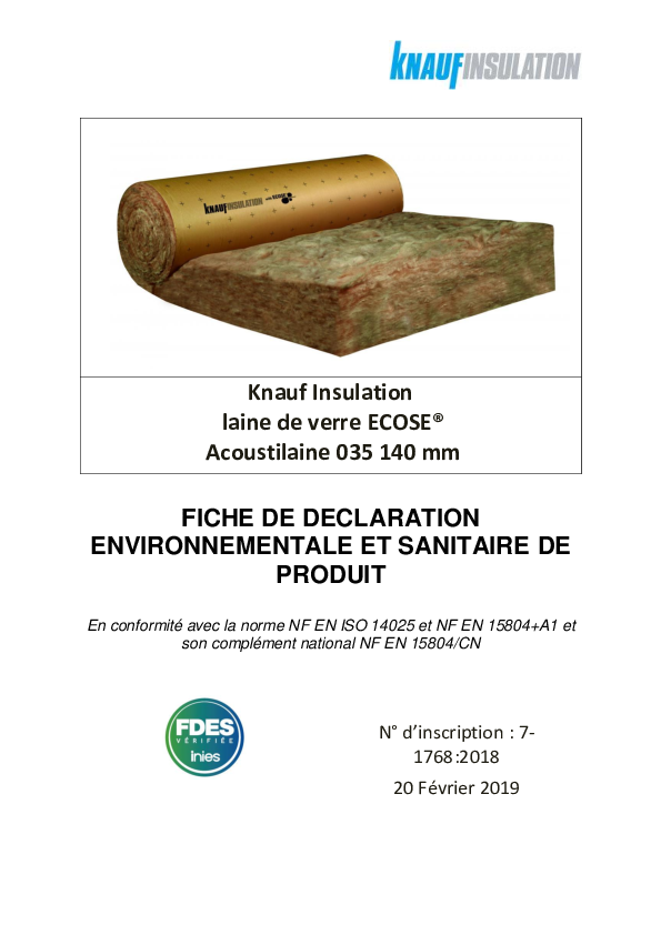 Le produit ACOUSTILAINE 035 de KNAUF INSULATION est composé de : Fibres minérales .