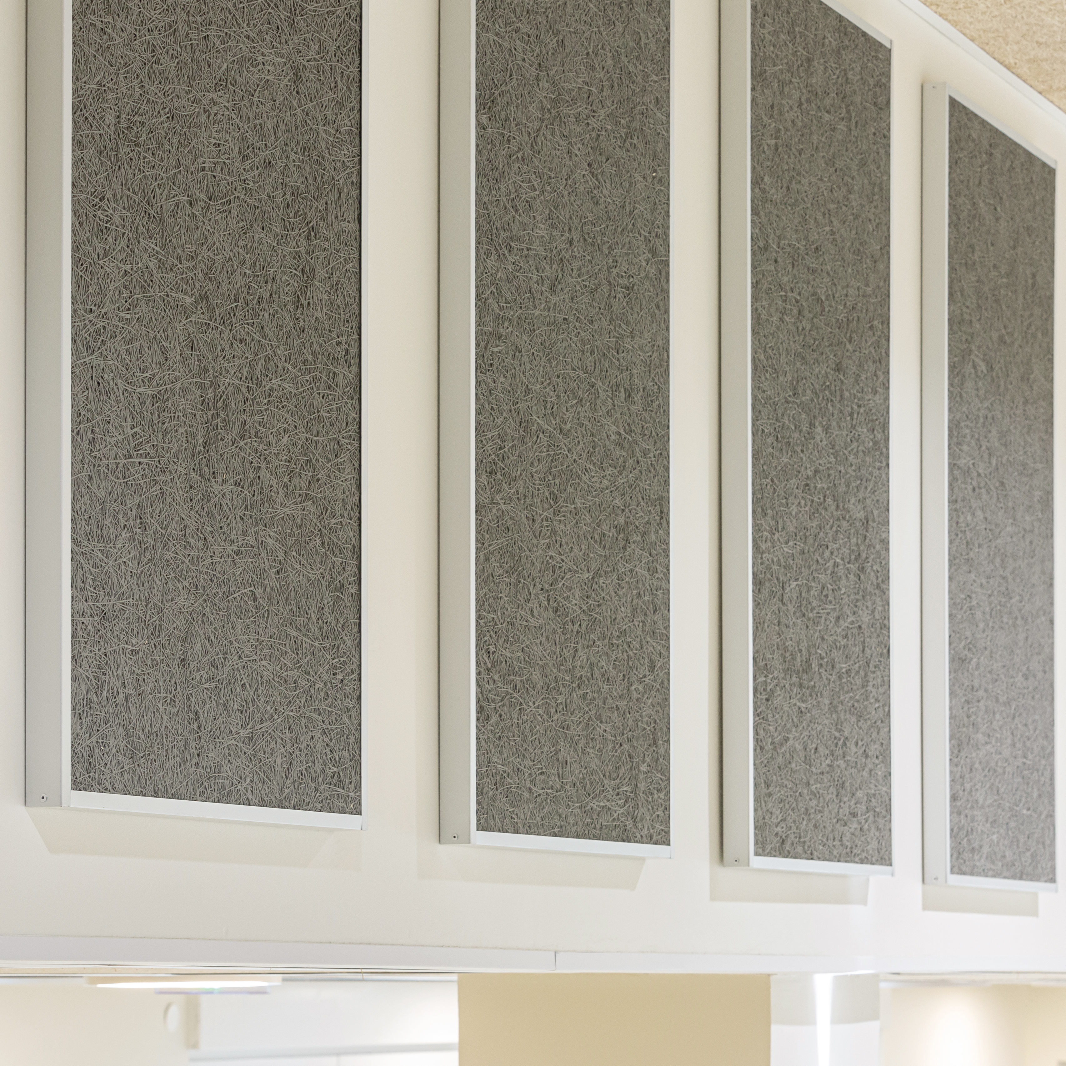 Ilot acoustique, de forme rectangulaire ou carrée, Organic Sound est composé d’un panneau d’Organic Twin et d’un cadre aluminium.