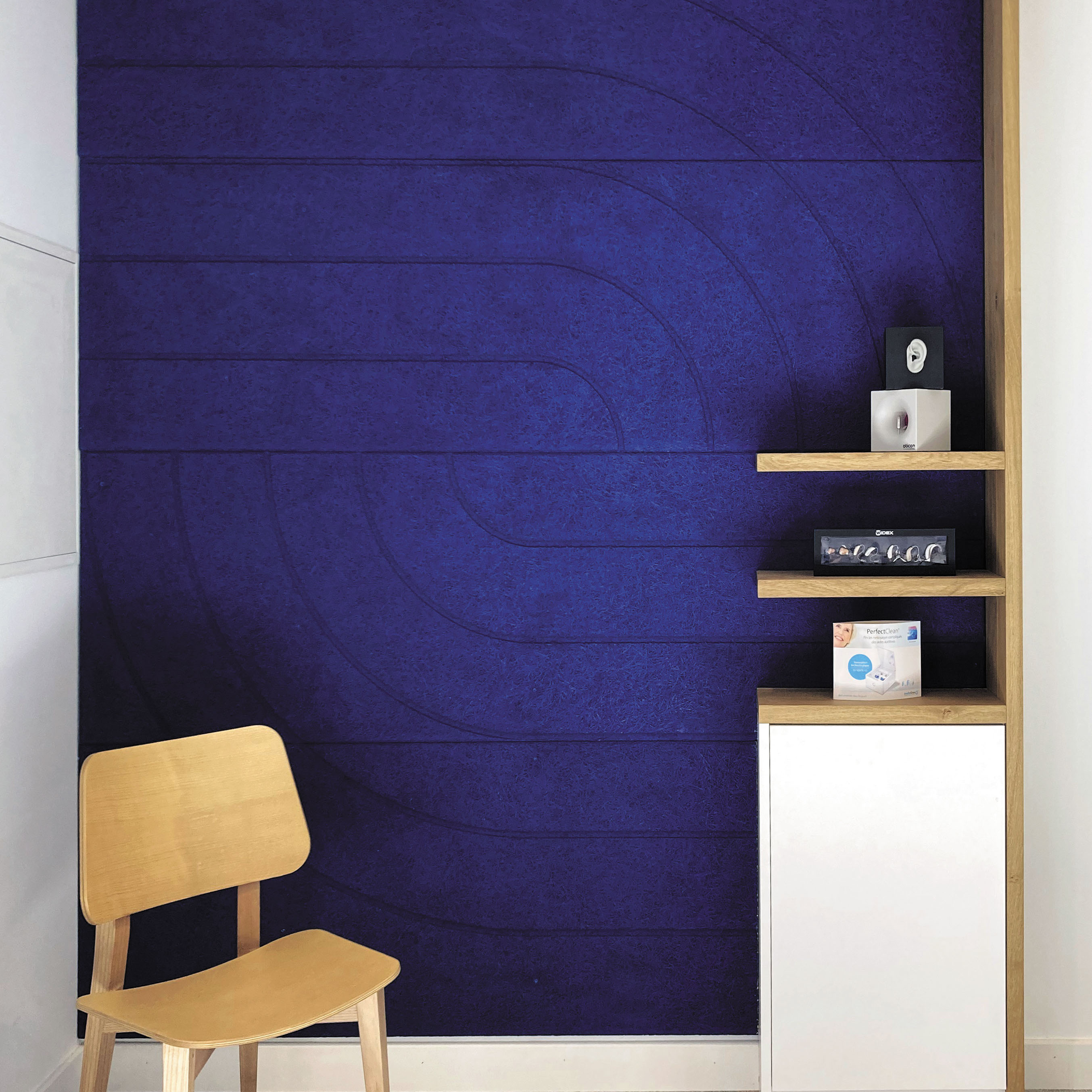 Le produit DALLE ACOUSTIQUE EN LAINE DE BOIS - DÉCOR ORGANIC CREATIVE IMPRESSION & ORGANIC CREATIVE LINES de KNAUF existe dans les coloris : Bleu .