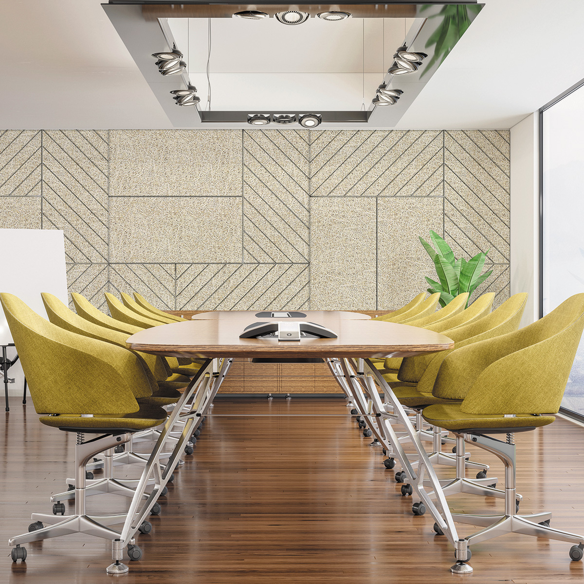 Organic Creative est une gamme de décor personnalisable par impression ou fraisage pour dalles en laine de bois Organic :