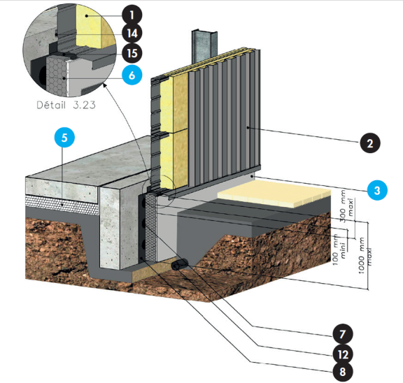 Les panneaux peuvent rester apparents sur une hauteur maximale de 0,30 m à partir du niveau du sol fini ou être enterrés sur une hauteur maximale de 1 m à partir du niveau du sol fini.