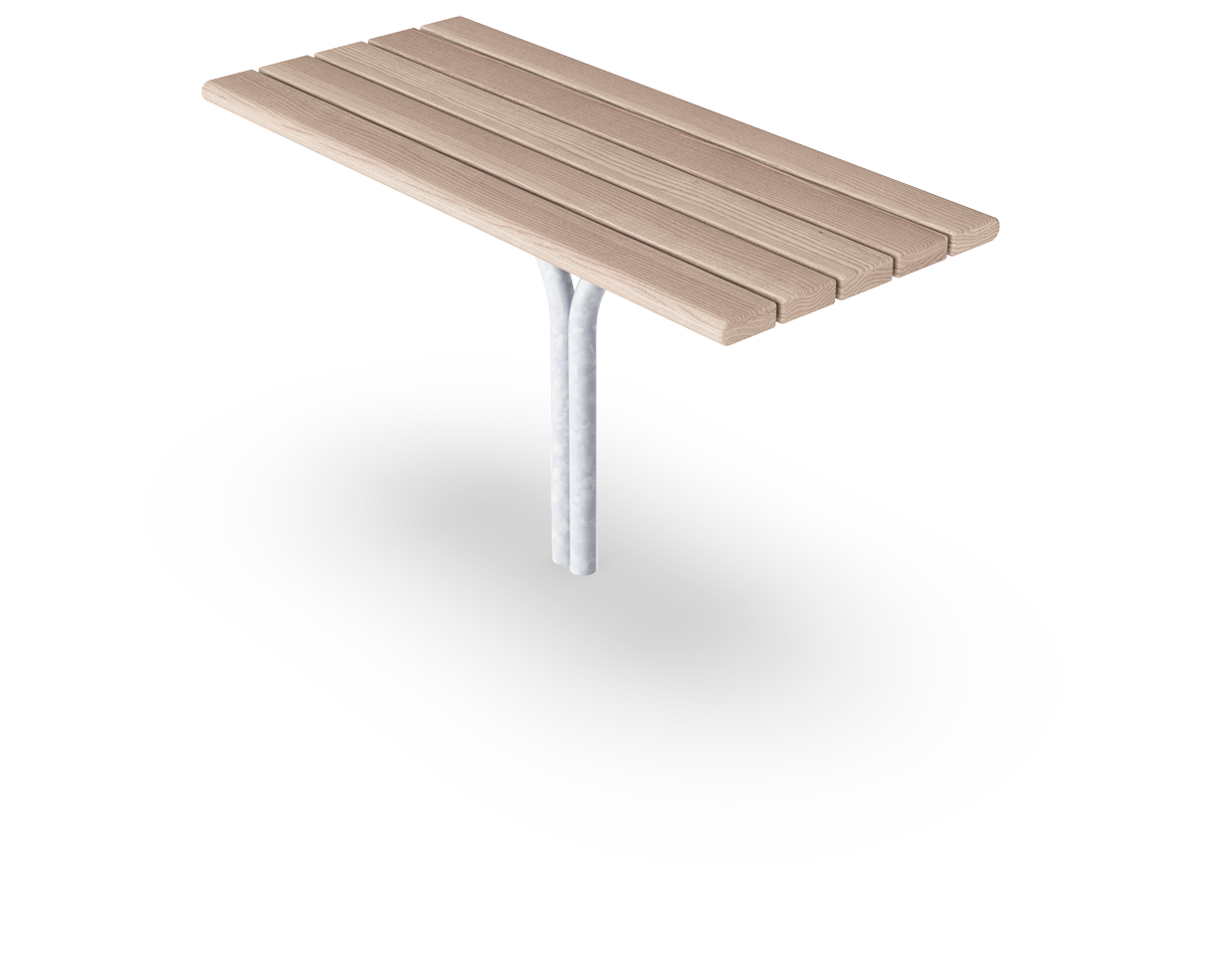 Le mobilier d'extérieur KOMPAN est disponible pour une installation en surface et enterrée. Installation en surface par ancrage à la couche de base ou installation dans le sol sous forme de supports en acier galvanisé à chaud directement dans le sol ou supplémentaires.