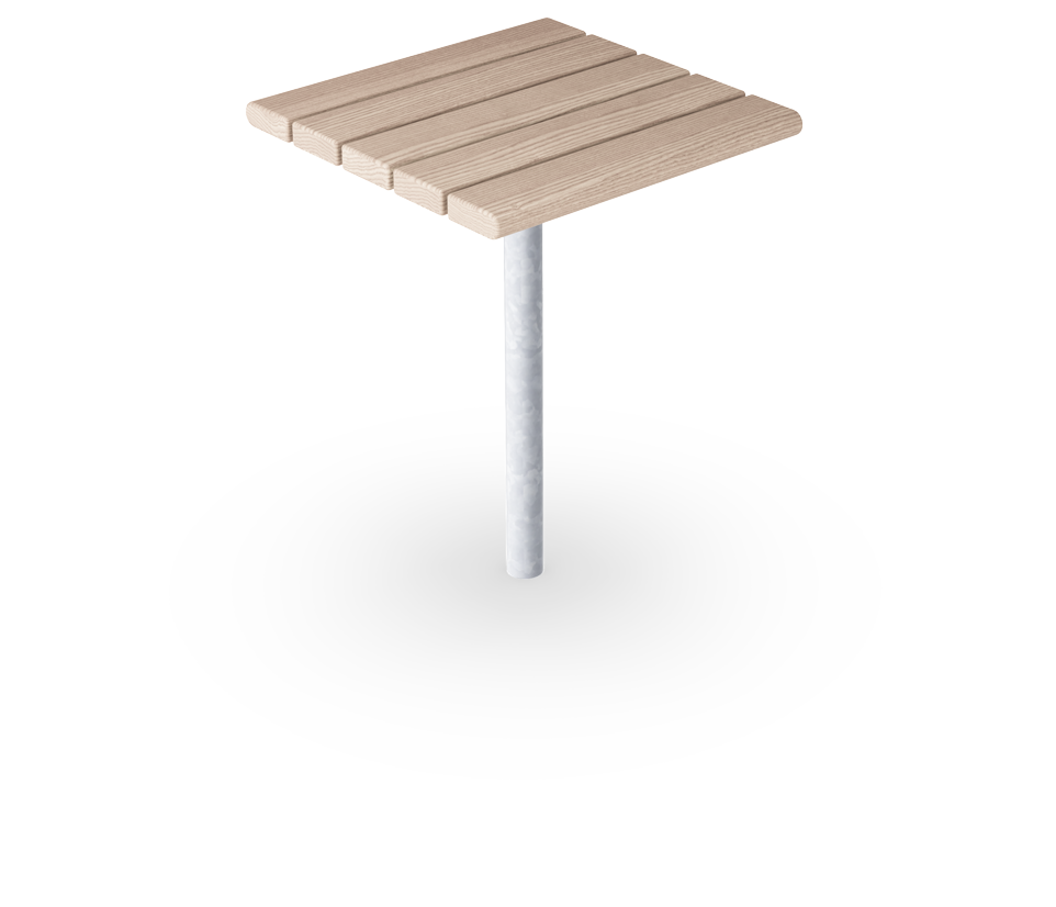 Le mobilier d'extérieur KOMPAN est disponible pour une installation en surface et enterrée. Installation en surface par ancrage à la couche de base ou installation dans le sol sous forme de supports en acier galvanisé à chaud directement dans le sol ou supplémentaires.