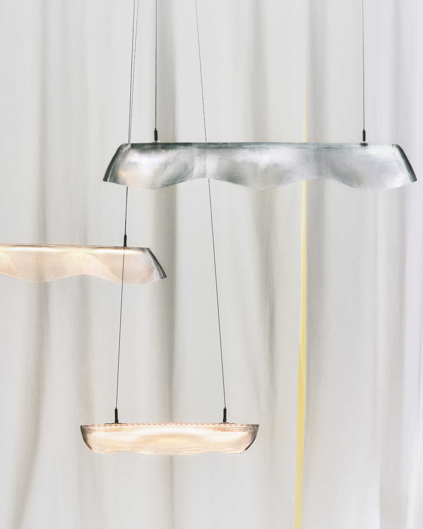 Un luminaire eco-conçu aux courbes fines semblent évoluer avec fluidité dans l’espace. Inspirées par des formes organiques, ses lignes captent subtilement la lumière, insufflant une sensation de mouvement.