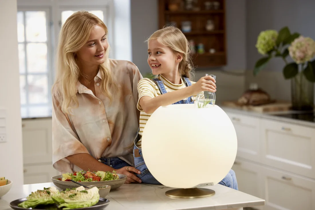 Le Kooduu Sphere est disponible avec 2 différentes plaques de base colorées : une plaque de base couleur Argent Brossé ou une plaque de base couleur Laiton, toutes deux créant une sensation contemporaine mais intemporelle.