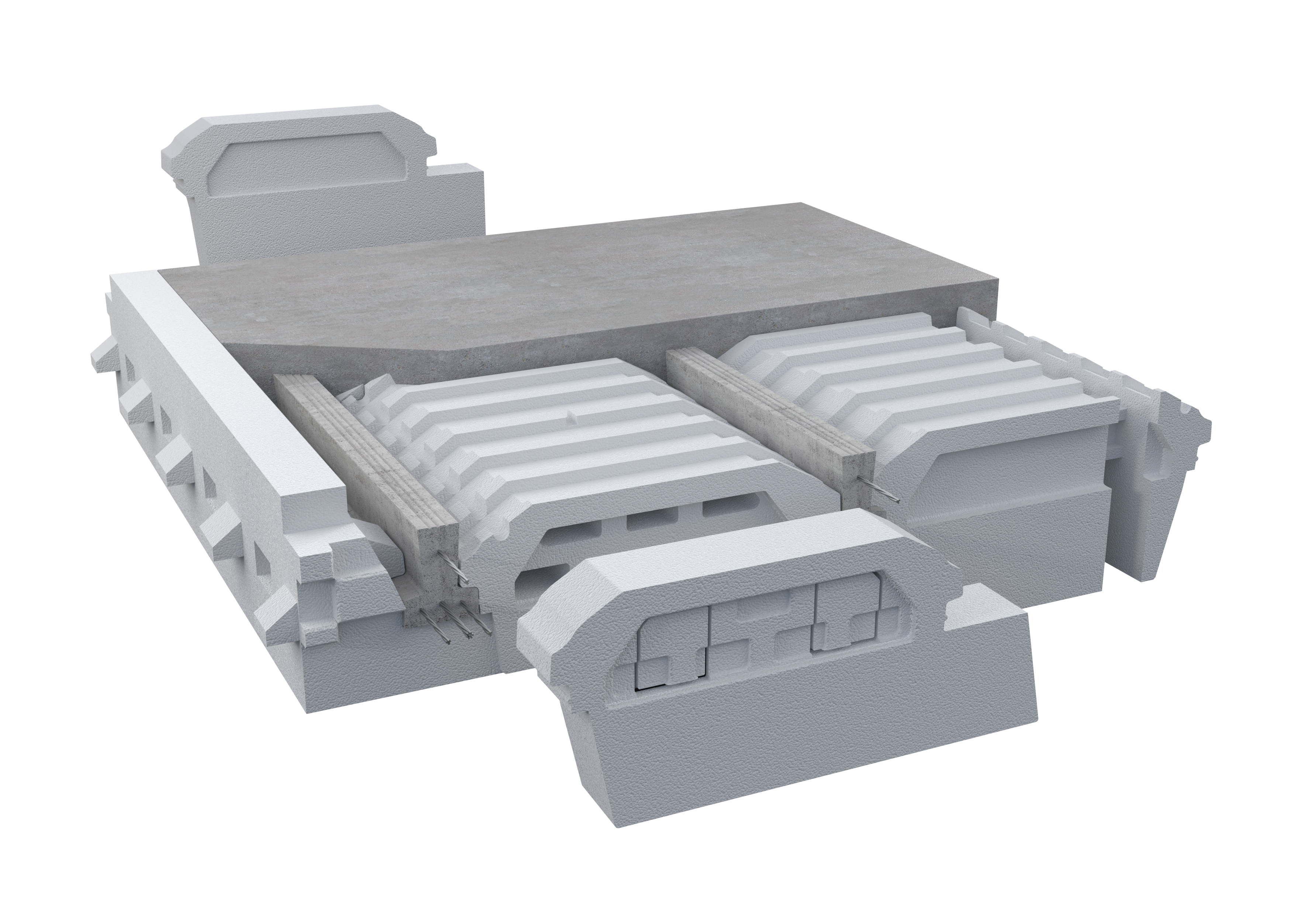 • Les entrevous Isoleader en polystyrène moulé isolent toute la superficie du plancher grâce à leur languette, qui passe sous la poutrelle.