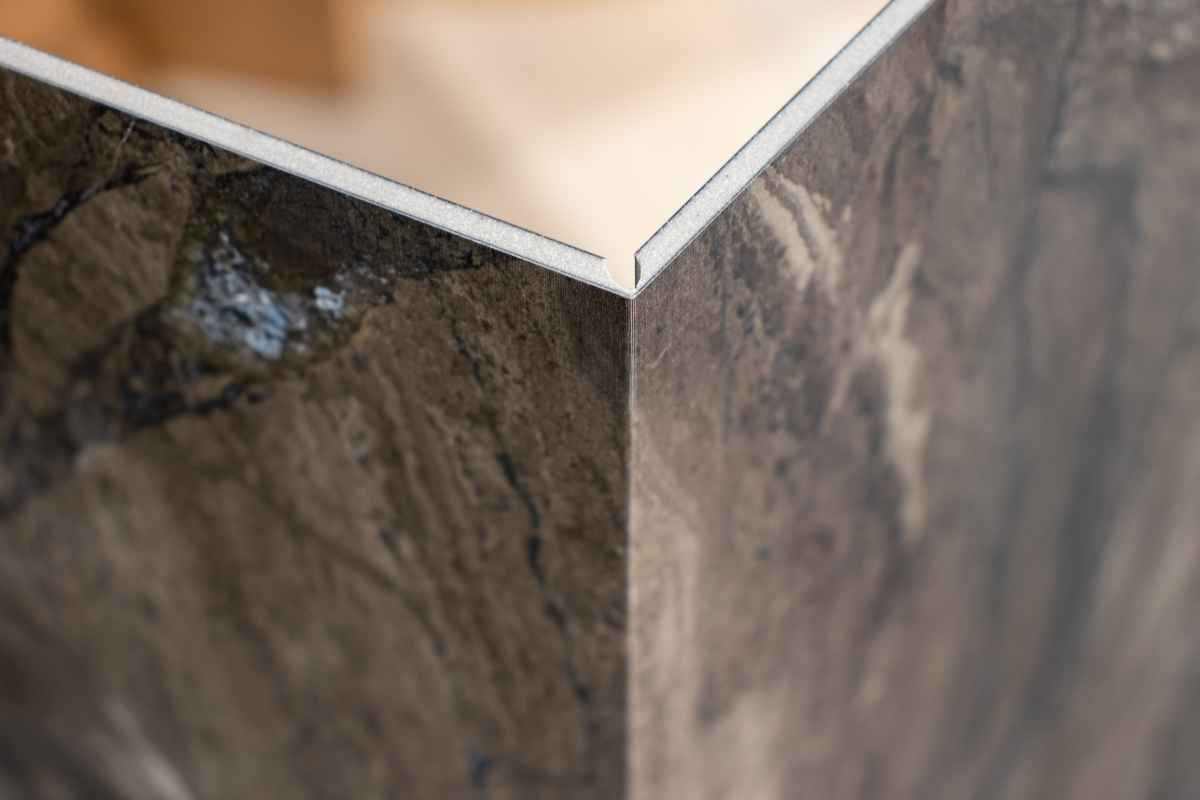 Les panneaux aluminium Alluslate® avec finition mate, peuvent être pliés en appliquant des techniques simples de fraisage à l'arrière, puis de pliage. Cette technique permet de créer des coins intérieurs ou extérieurs sans joints, en garantissant la continuité des matériaux et sans perte de caractéristiques.