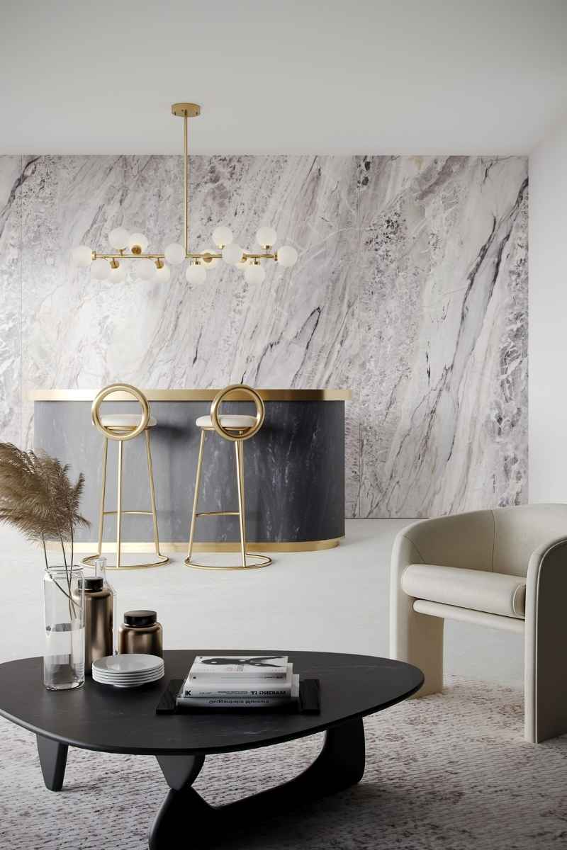 - Bericcio : à première vue, il est vraiment difficile de distinguer le design Bericcio d'une pierre naturelle. Son motif reproduit fidèlement les textures, les couleurs et les détails du marbre d'Orient, pour créer des espaces élégants et luxueux.