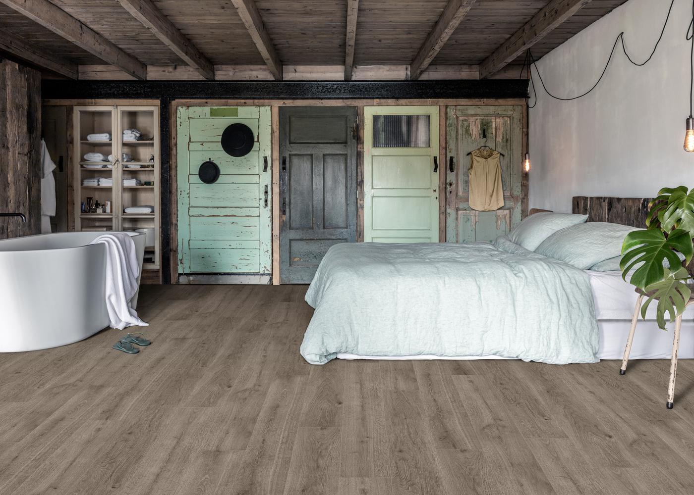Nos lames à usage résidentiel se posent sur à peu près n'importe quelle surface, sans préparation, même sur un chauffage au sol. Dans l'entrée, le salon, la chambre et même la salle de bain. Larges et longues, elles donnent une belle impression d'espace à la pièce. Avec leur surface brossée et leur finition mate, elles ont l'apparence d'un parquet jusque dans les moindres détails.