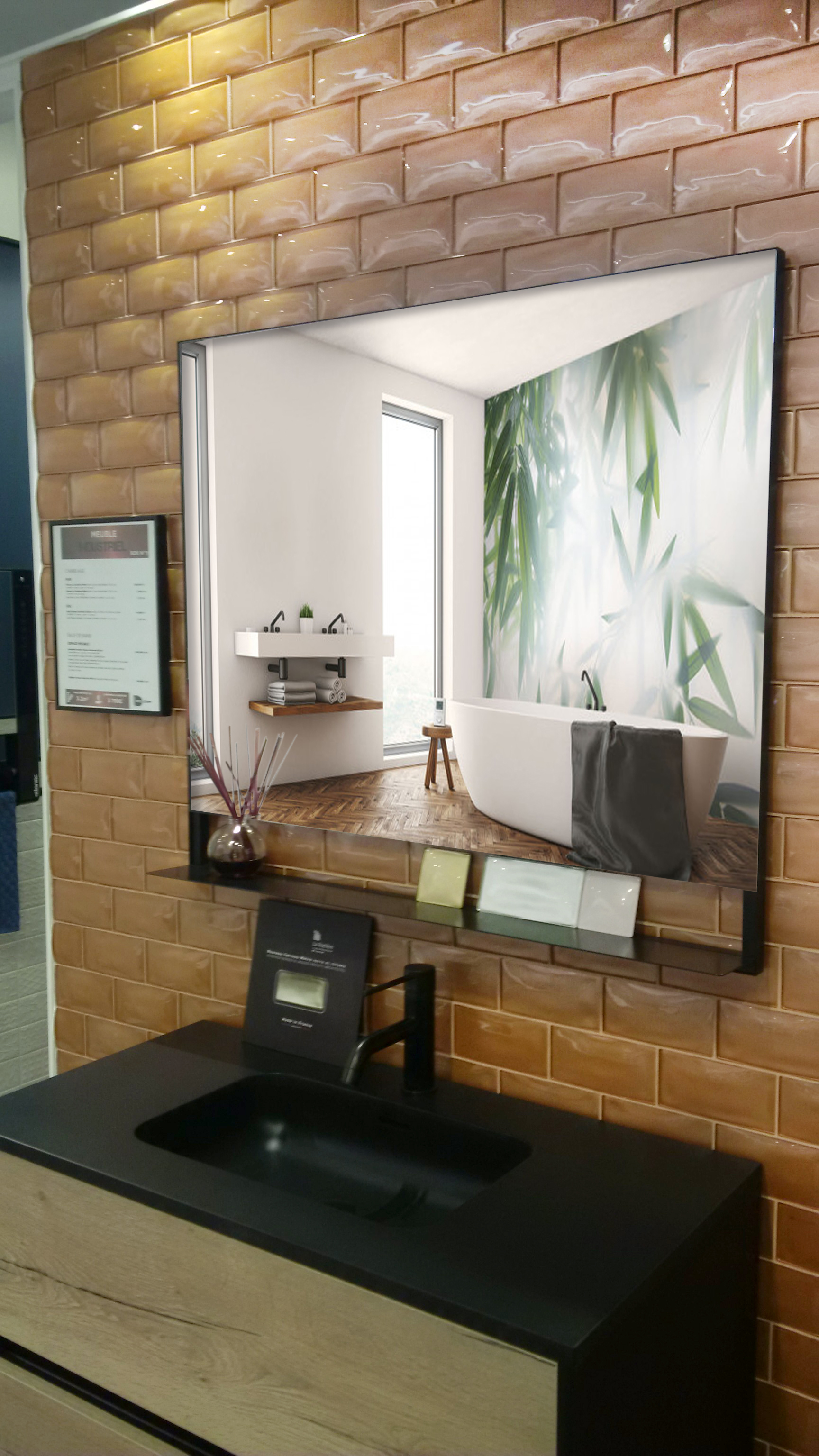 Nouvelle icône du métro parisien, ce carreau galbé évoque le mouvement perpétuel et captivant d’une vague. Son effet capitonné, sa profondeur et son revêtement renvoient une lumière enveloppante et changeante pour un rendu dynamique et élégant.
