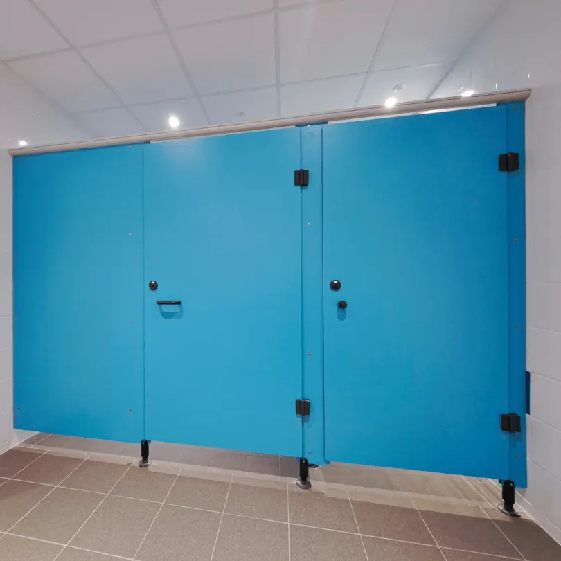 Fabriquée entièrement en panneaux stratifié compact de 13 mm d’épaisseur, la cabine sanitaire Héra représente le modèle idéal pour des finitions haut de gamme. Les 2 mm supplémentaires par rapport au 10 mm offrent une rigidité accrue et permettent des possibilités architecturales élégantes, tout en conservant la polyvalence nécessaire pour équiper tous types de vestiaires et sanitaires collectifs : écoles, centres aquatiques, hôpitaux, salles des fêtes, campings ou environnements industriels.