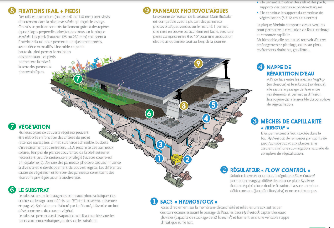 Le produit Toiture Hydroactive Oasis du fabricant Le prieuré classé dans la catégorie Couverture - Toiture - étanchéité > Produits pour toitures-terrasses plates ou inclinées (pente - de 15%) > Toitures végétalisées est référencé dans la Matériauthèque digitale Materiaux.archi.