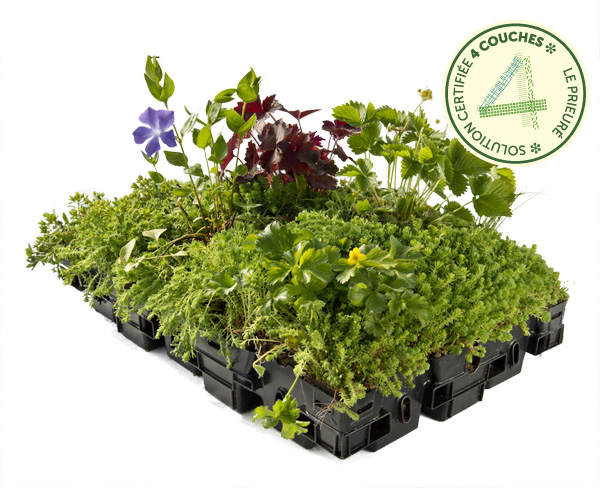 Bac pré-cultivé largement répandu sur le marché de la toiture végétalisée, le bac Hydropack est produit sur nos pépinières.