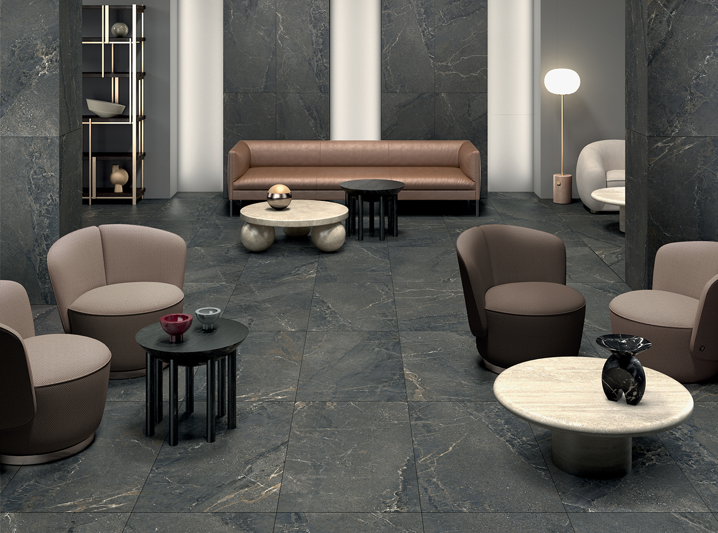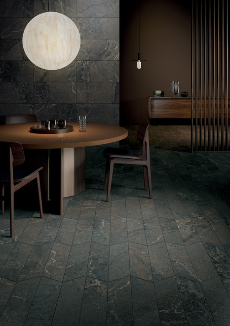 Une collection inédite et surprenante de surfaces en céramique nées de la fusion savante et calibrée de marbres et de pierres ayant un intense réalisme tactile et visuel.