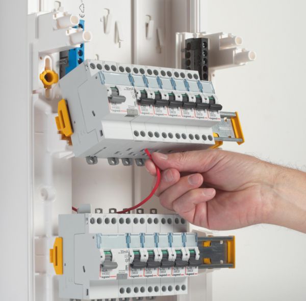Tableau électrique et coffret de communication DRIVIA™ : complet et innovant. Les coffrets 13 et 18 modules par rangée peuvent être installés en résidentiel ou en petit tertiaire grâce à sa conformité à la réglementation des ERP (Etablissements Recevant du Public) et des IGH (Immeubles de Grande Hauteur). L'installation peut se faire directement au mur, ou sur goulotte GTL en saillie ou en encastré grâce aux connecteurs Drivia™ Clip. Il est également possible de jumeler des coffrets à la verticale ou à l'horizontale avec des cavaliers de liaison Drivia™ Easy. La fixation est facile et rapide grâce à l'accessoire DRIVIA clip qui permet une fixation du chassis du coffret sur la goulotte GTL et son réglage en hauteur. Le câblage dans le coffret est facilité grâce au rail extractible par simples clips latéraux et par les rails inclinables en position basse ou haute pour accès facilité au connectiques des produits. Le coffret de communication DRIVIA permet la répartition des médias dans la même esthétique que le tableau électrique pour plus d'homogénité dans le logement : différentes compositions (en kit ou vrac) sont proposées à la vente.