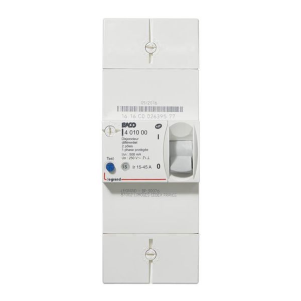 Le produit Disjoncteur de branchement Enedis bipolaire différentiel 500mA instantané - 45A de LEGRAND est prescrit dans des projets de type : Habitat individuel .